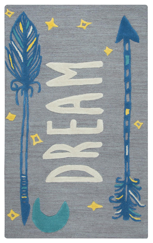 Colorful and creative, this rug will inspire the imagination of everyone young, and young at heart, with the caption "DREAM". Hand tufted by the skilled weavers in India, each piece is created with 100% Wool and great attention to detail.