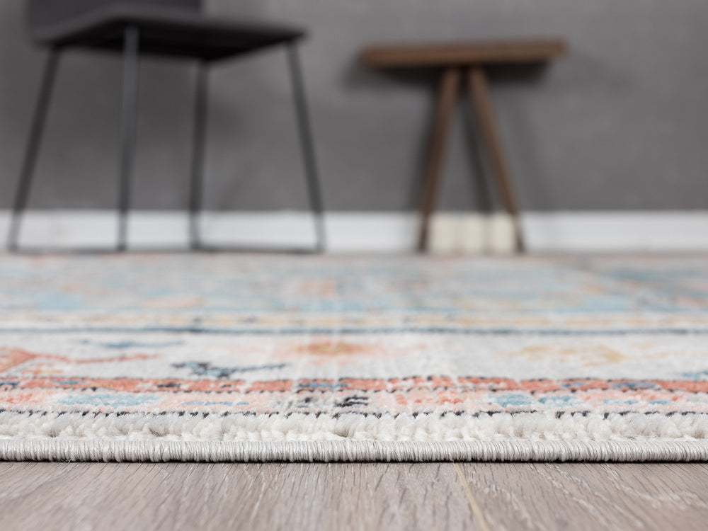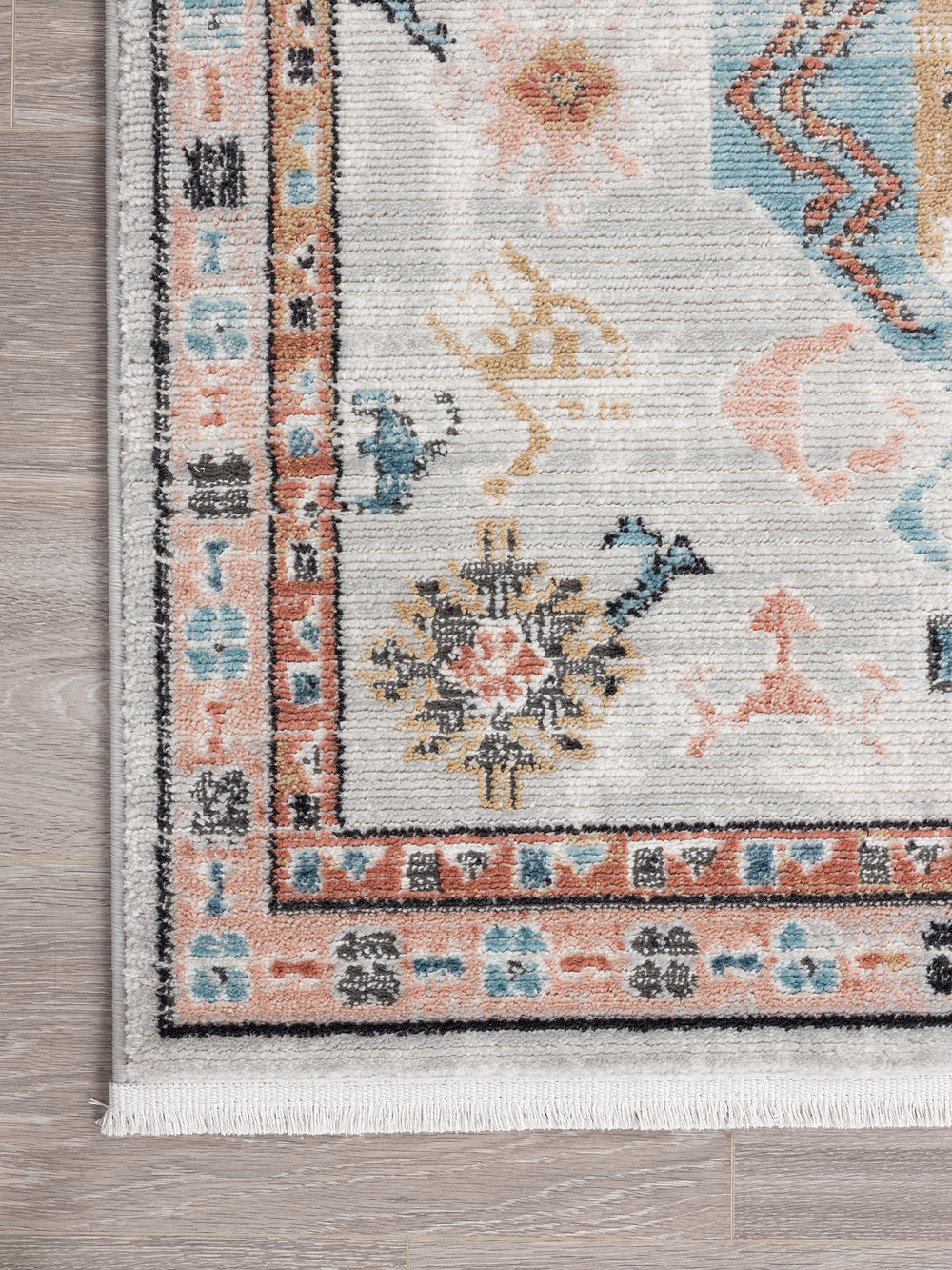 Eye-catching pale teal blue may be the first thing you notice on this beautiful area rug but place it in your home and you will come to know and appreciate its other fine features as well. Features such as subtle earth tones, a delicate yet deft design as well as durability make it an excellent choice for any decorating style.