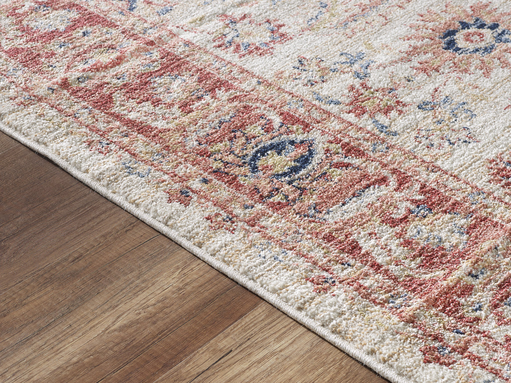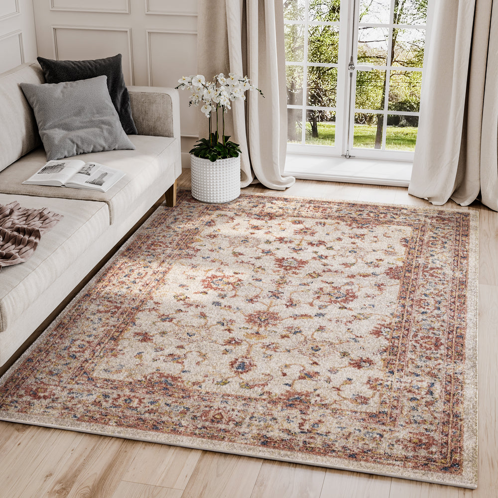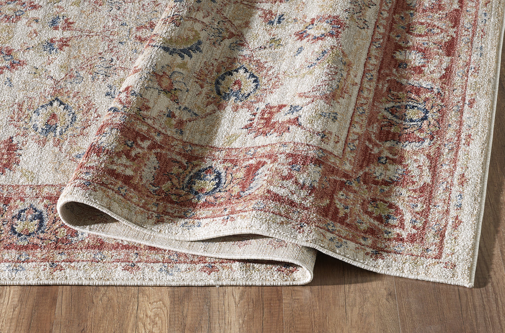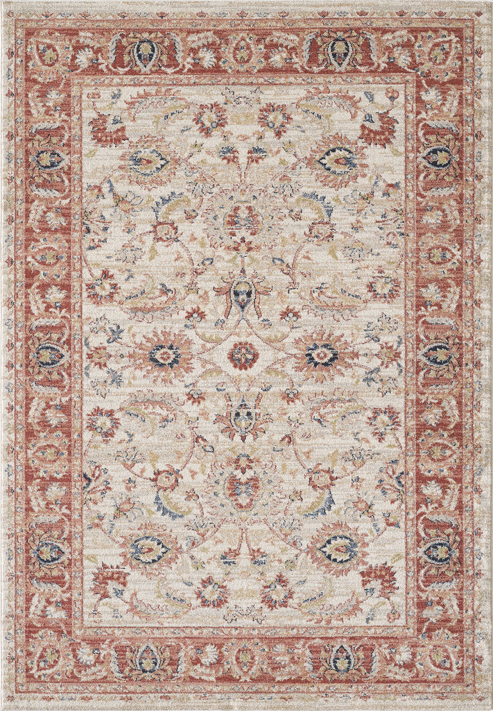 Your room will feel warm, inviting and cozy thanks to this traditional area rug. Soft beneath your feet and appealing to the eye, this piece features an all-over beige color that makes it ideal for any room. Offering a bold red border for added ambiance, this piece is a must-have for your personal library, living room or office space. To complete the look, there is an all over motif that was composed of various shades of beige, red and hints of dark blue.