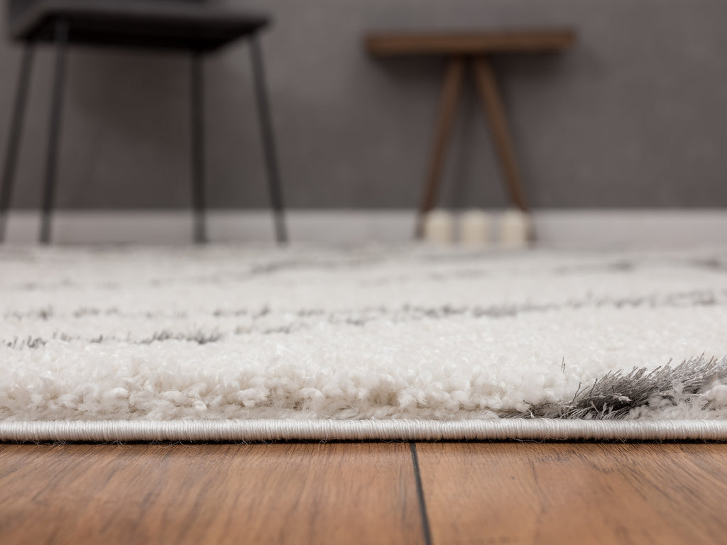 Stylish. Sophisticated and beautiful too! This shag rug is bold in design with neutral colors that create a statement rug that won’t distract the eye from the rest of your decor. Gray lines create natural curves for a design that feels organic whilst maintaining it’s modern, chic style. Made from yarn with long pile height to create a shag style neutral area rug. This rug won’t fade or fray - a great addition to your decor that will last for years.