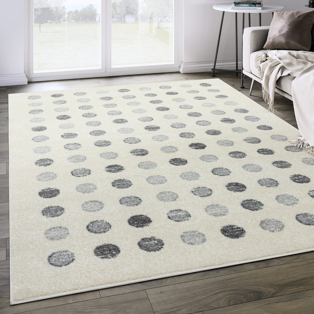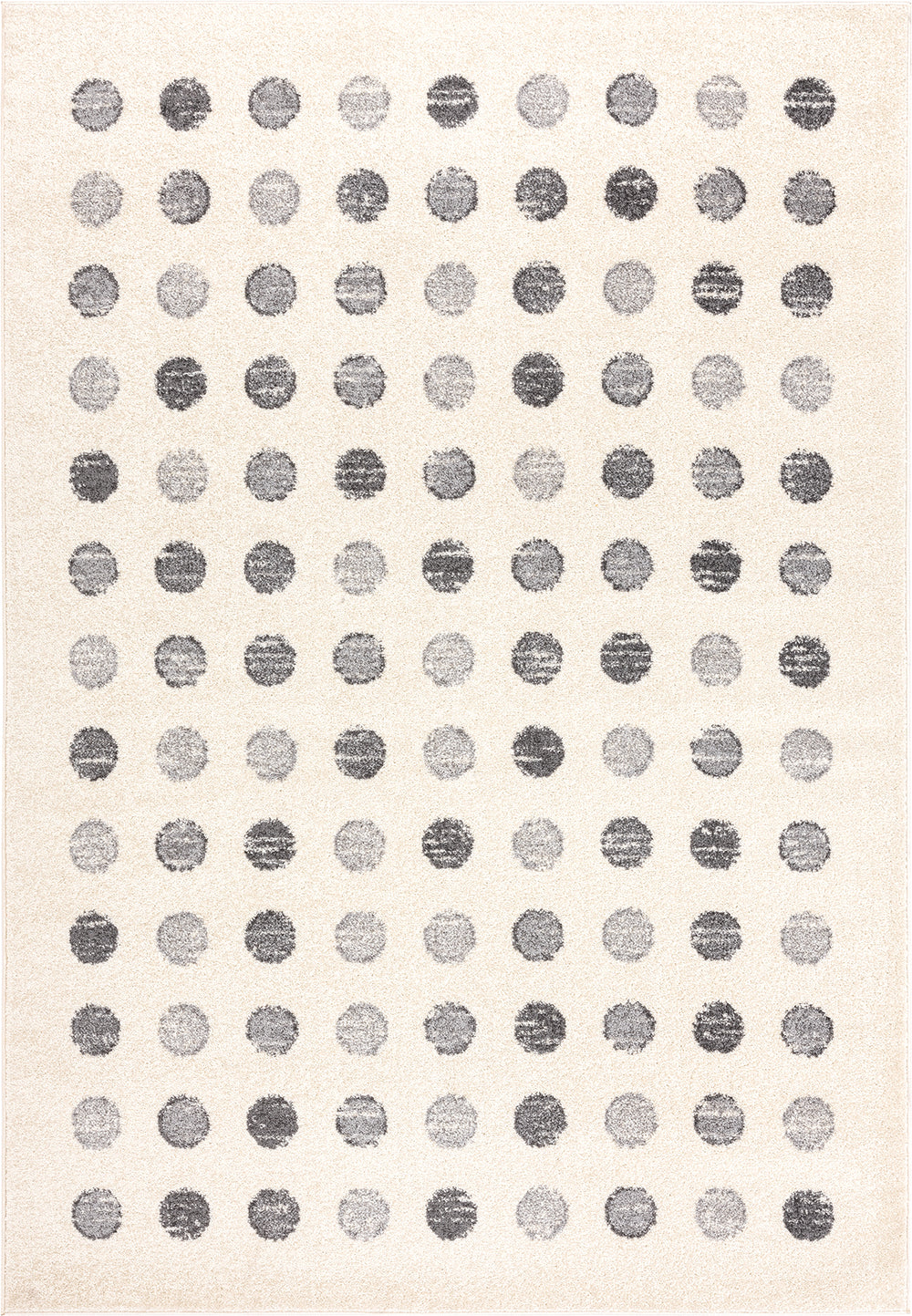 Who said art and area rugs can’t be one in the same? This artful geometric design pairs neutral dots in a straight lined pattern. The circular shapes vary in neutral color, from grey to ivory, guaranteed to suit any existing shades in your home. Don’t let the playful dots fool you. This is a sophisticated, elegant accent for any space in your home. Made with premium, easy-clean materials, this trusted area rug that will last years to come no matter where you place it in your house. Perfect your home’s interior style with a bold statement like this Casa rug.