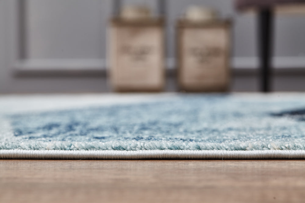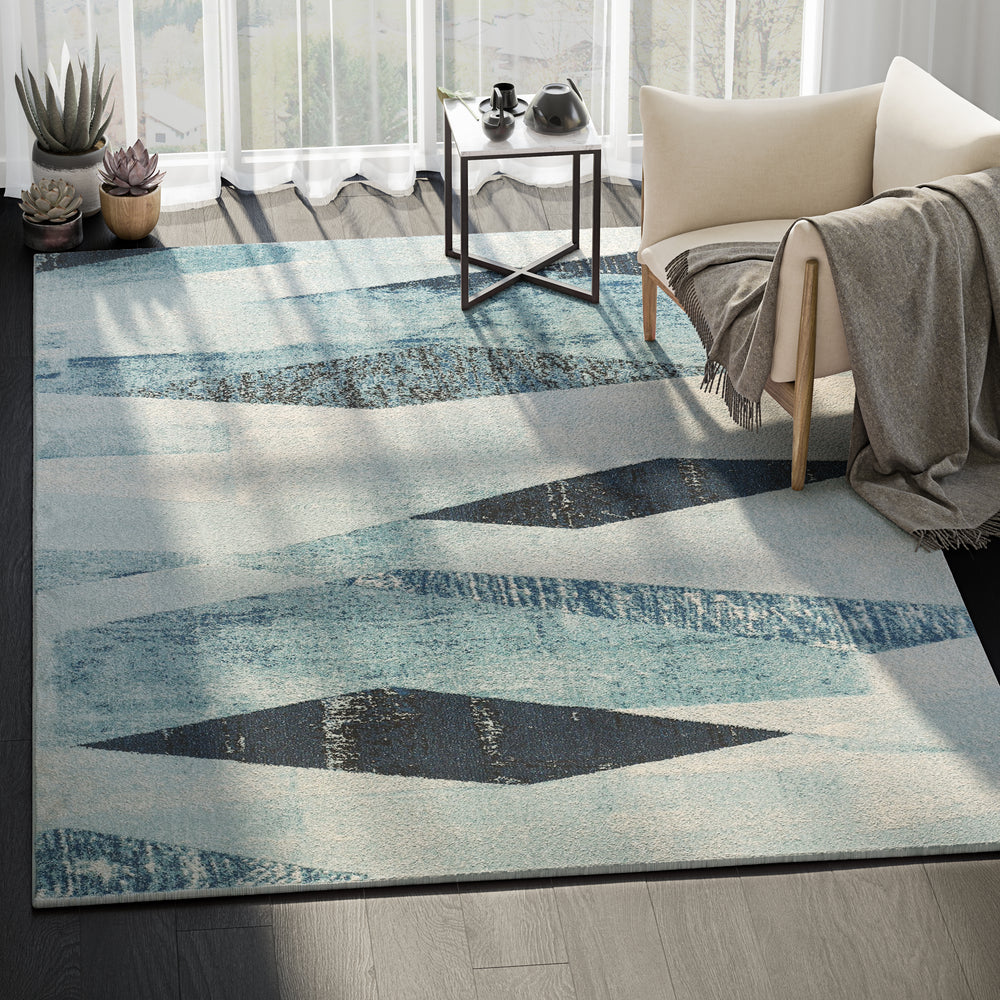 Our light blue and navy colored geometric rug is an excellent way to enhance the look of any modern styled room. Ideal for a kid’s bedroom, living room, office space, or playroom, this rectangular shaped piece from Turkey is well-known for bringing tons of unique, eye-catching detail. As if it couldn’t get any better, it’s affordable too, making it a win-win for everyone.