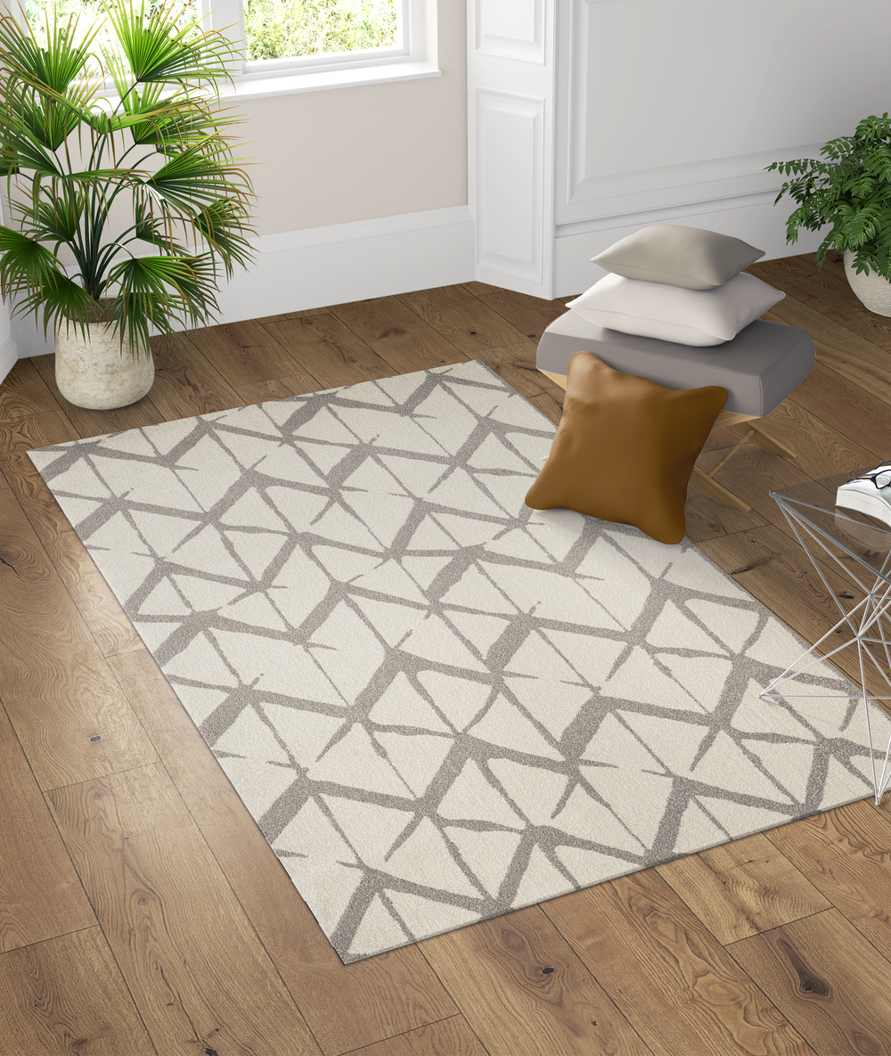 Geometric and fabulous, this unique rug from our Laguna Collection offers one of a kind style for your modern, eclectic and contemporary designs. At first glance, you will notice the versatile ivory colored background that is enhanced with a repetitive geometric motif in a deep navy color. The motif itself is a bold, one of a kind design that was made for those who enjoy a super edgy look. Ideal for bold bedroom designs or a fun living room makeover, this piece, and its super soft texture have got it going on!