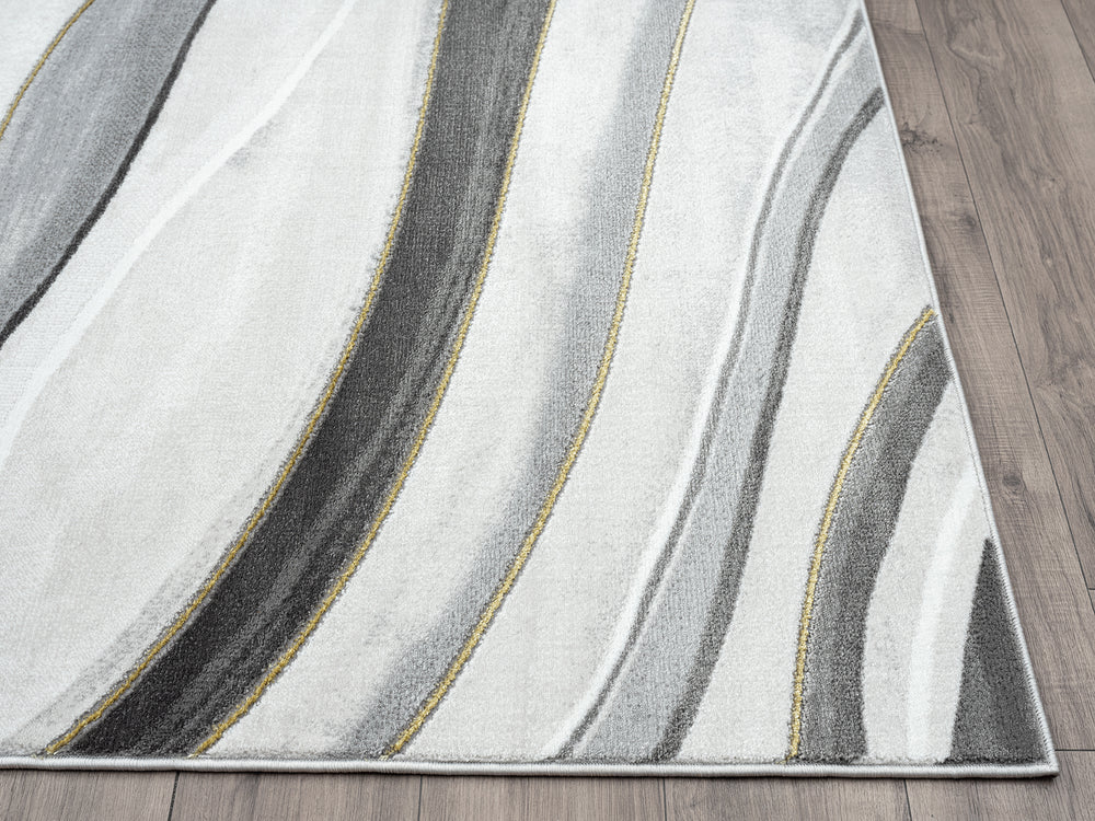 Give your home an edgy, bold statement with this Luna area rug. Created with contemporary art in mind, this neutral favorite easily fits into any existing space in your home. The grey background is accentuated by neutral lines in varying shades of grey and white. Mixed in, you might even spot touches of gold and cream as a pop of color. Like the sands of time, this artful rug is always on the cusp of something new. It’s elegant enough to suit any design style without the aesthetic being too overwhelming. It’s the perfect easy-care area rug for any space.