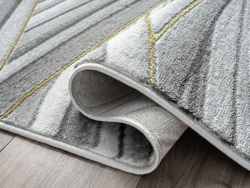 At first glance, this area rug looks like a cross between a sweeping hillscape and waves during a storm. Beauty is truly in the eye of the beholder, and you’re free to draw whatever tale from this imaginative, contemporary work of art. The grey wavy style is reflected in each side of the rug, each more unique and powerful than the next. The varying neutral shades add intense depth, bringing the visual to life. For a pop of color and texture, golden hues weave their way throughout the entire work. This easy-care rug is non-shedding, and it’s built as strong as the ocean.