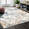 Abani Porto PRT120A Contemporary Swirl Light Blue and Burnt Orange Area Rug