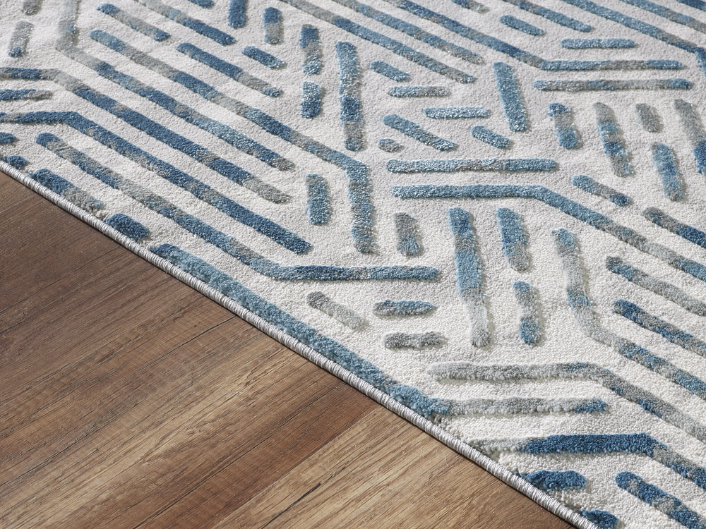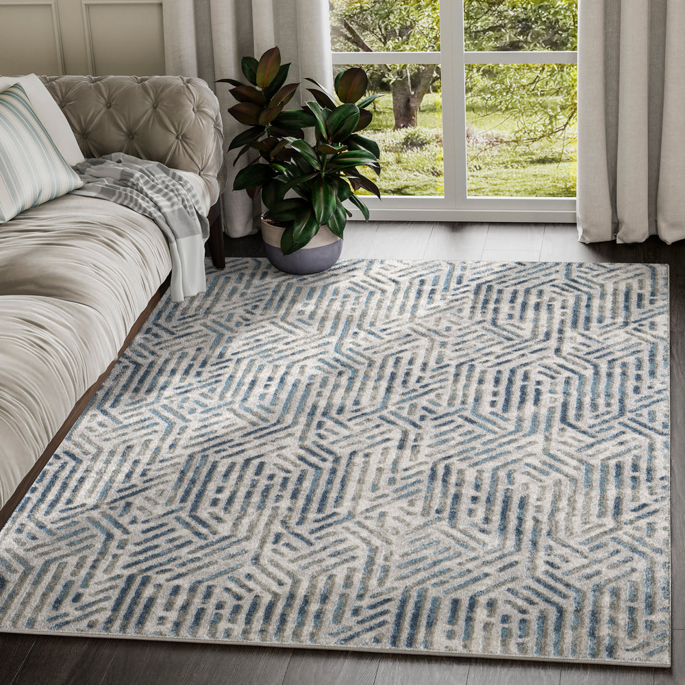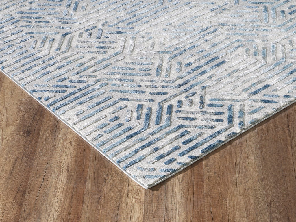 Give your home a slice of style with this exquisite rug. Designed with short geometrical motifs, it brings about a sense of minimalism with a dash of charm. This rug is blue and ivory in color giving the rug a rustic, charismatic vibe. Its perfect for as a bedroom decor or even a living room decor element. The lovely play on colors makes the rug more versatile. It goes great with contemporary designs and also goes great with traditional decor. It is crafted to blend in with all kinds of designs seamlessly.