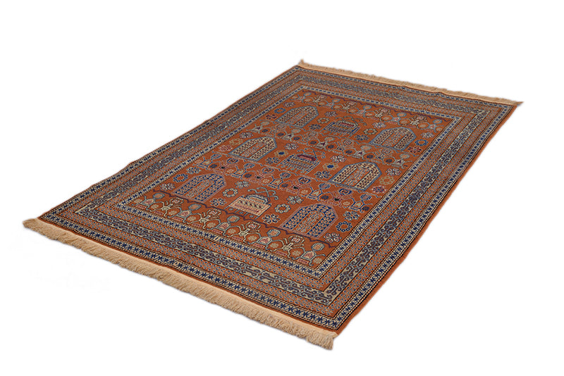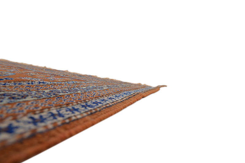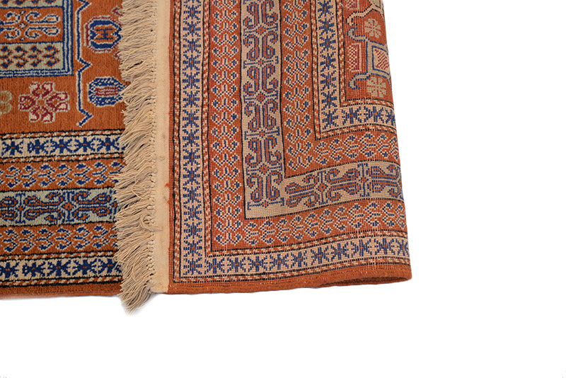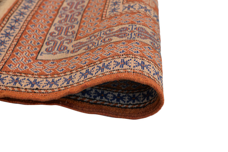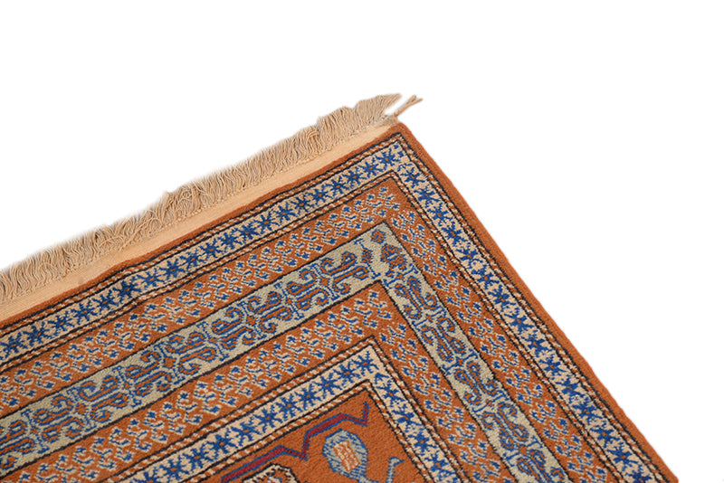 Vintage Afghan Copper and Blue Area Rug Wool Hand Knotted 3' 10" X 5' 7"
