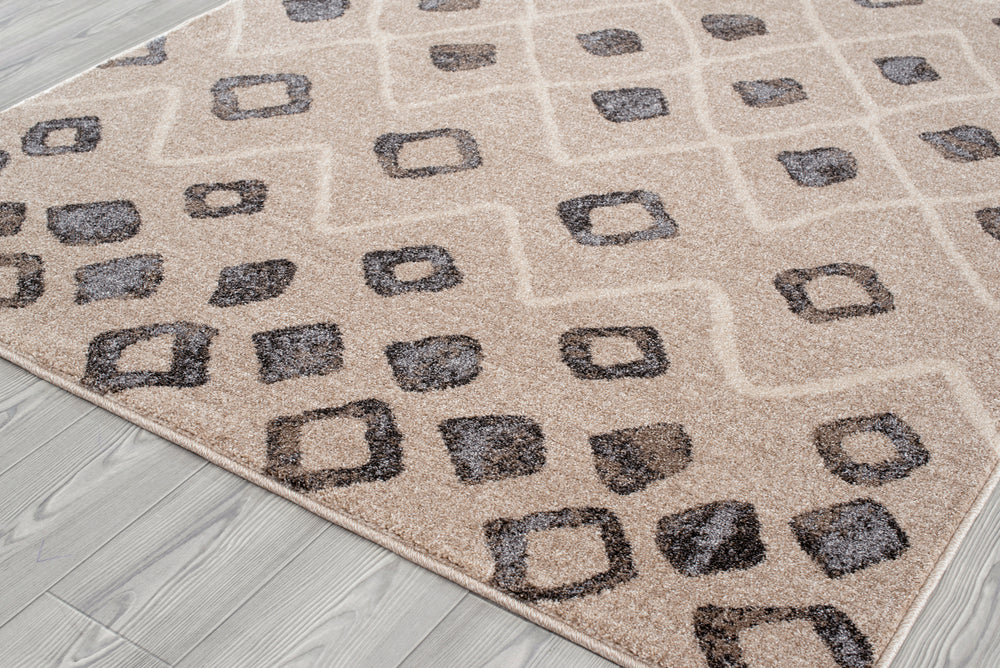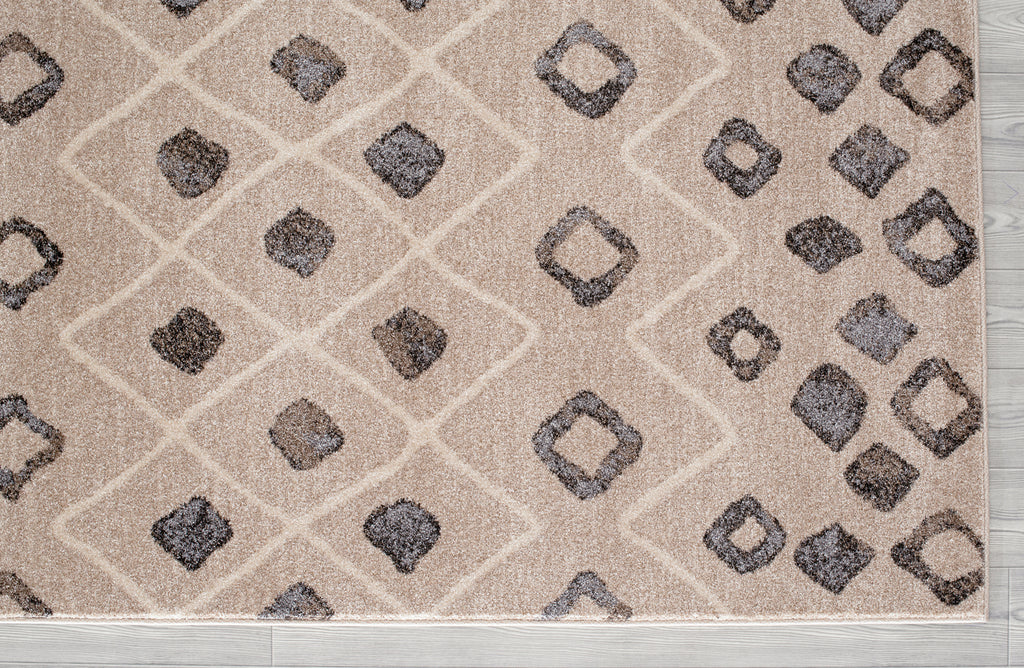 Moroccan motivated designs Caribe offers casual high fashion in a loose low shag construction. Ideal rug for any room in your home. Made of durable stain resistant Polypropylene.