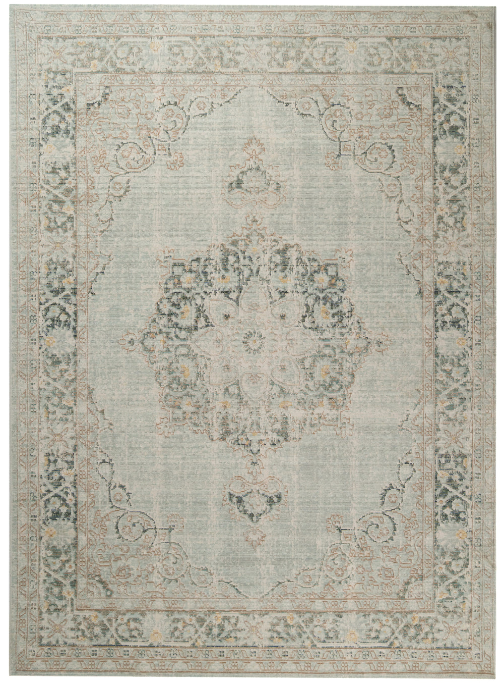 If you're looking for a classic and timeless designer rug, you're in the right place. Flaunting a refreshing color palette, this area rug is versatile enough to easily fit into any space in your home. Featuring a vintage, weathered look and a super low pile, you'll love both its design and craftsmanship. Power-loomed in Turkey with 100% polyester yarn, this rug is perfect for high-traffic areas or homes with children and pets.
