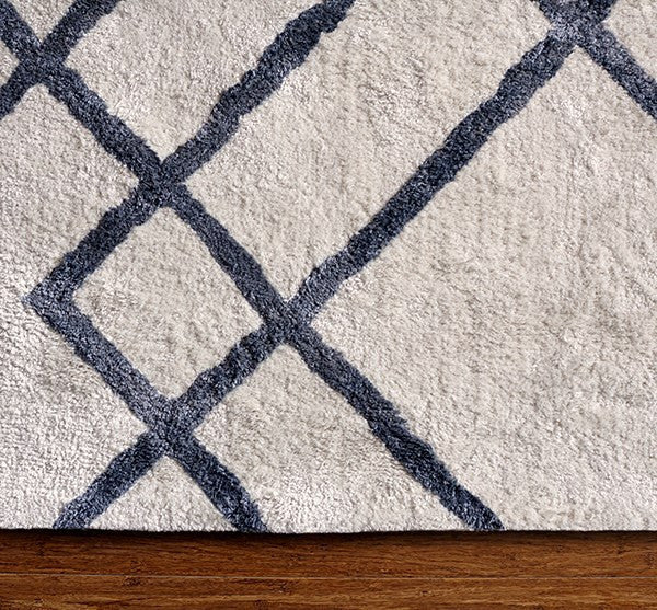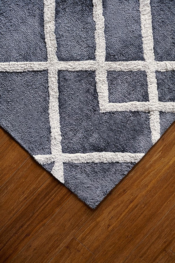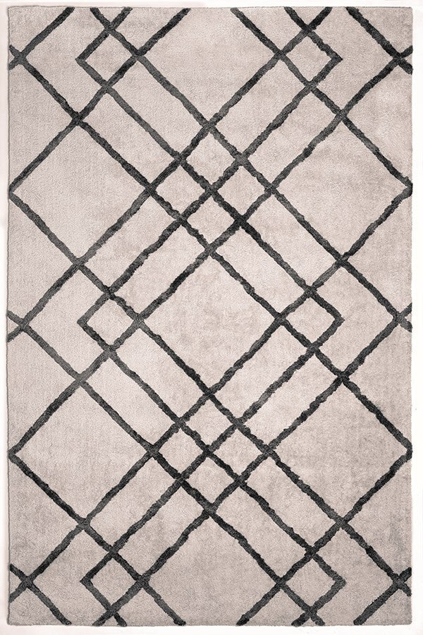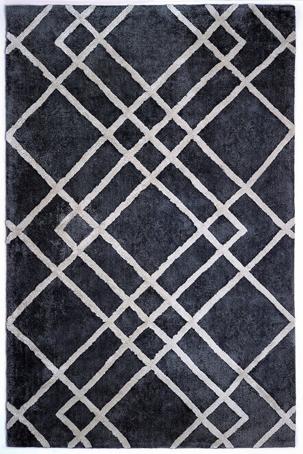 The Astralis Collection by Anji Mountain is inspired by geometric design and elevated by the use of supremely elegant and lifestyle-friendly bamboo viscose. Silky soft and irresistible to the touch, bamboo viscose provides both shimmer and softness for an alluring proposition. Diamond Dogs features a multi-dimensional diamond pattern which is overtufted to great effect and a cool color palette of ivory and charcoal gray.