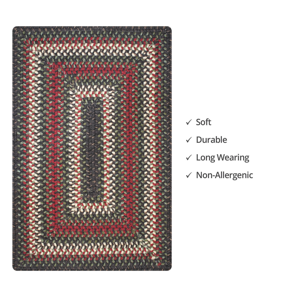 Bring rich color and interest to your home with this classic braided rug. A beautiful lodge-Style look with hues of dark brown, green, and pops of red, this rug is an ideal addition to any outdoor-Inspired space.
