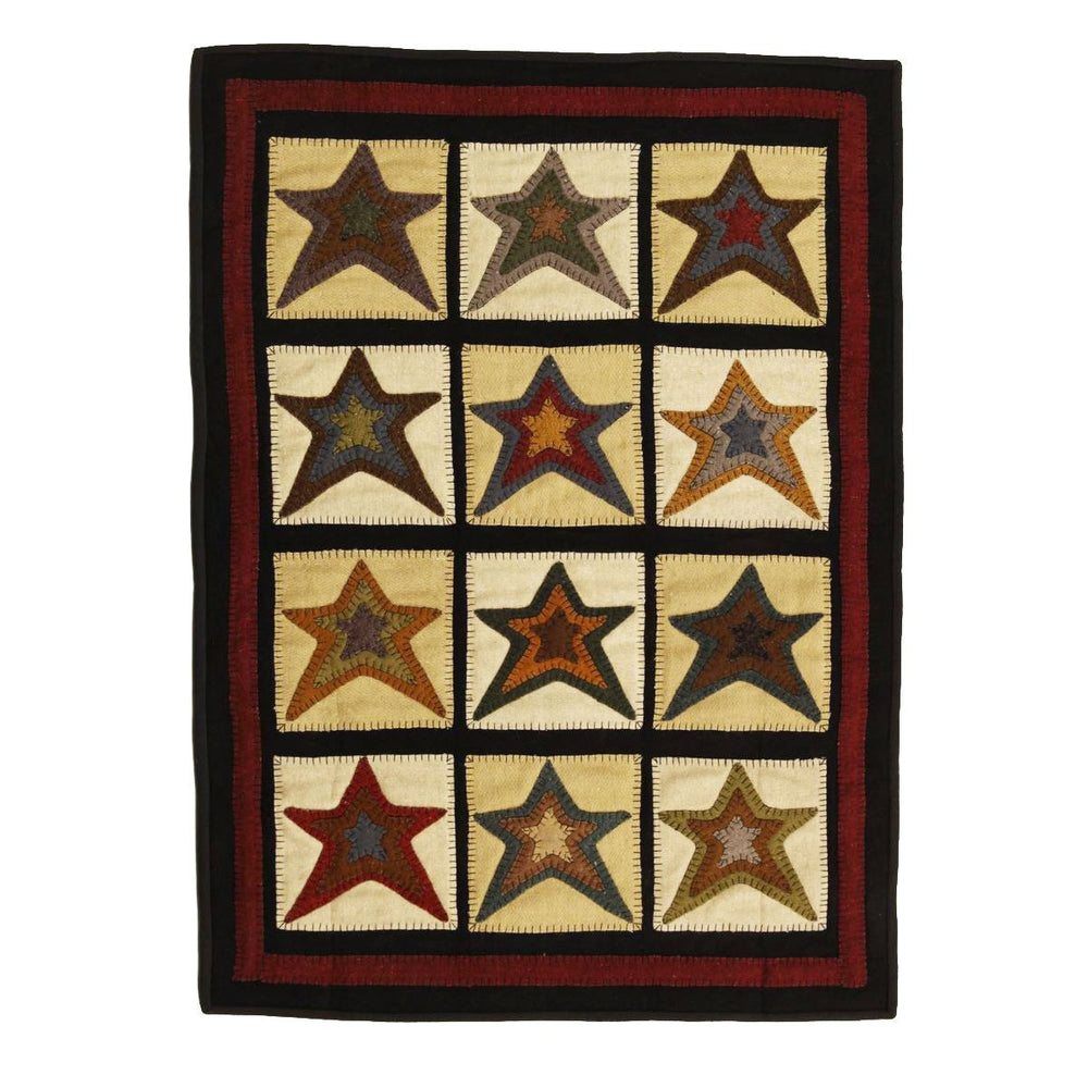 Designed by Carol Endres - Rows of stars form a patchwork of colors ranging from sage to gold to cinderbrown, caramel, red and blue. Each star is set against a background of soft yellow or warm wheat. A deep cranberry border completes the lovely ensemble that makes up the Star Patch Cream.