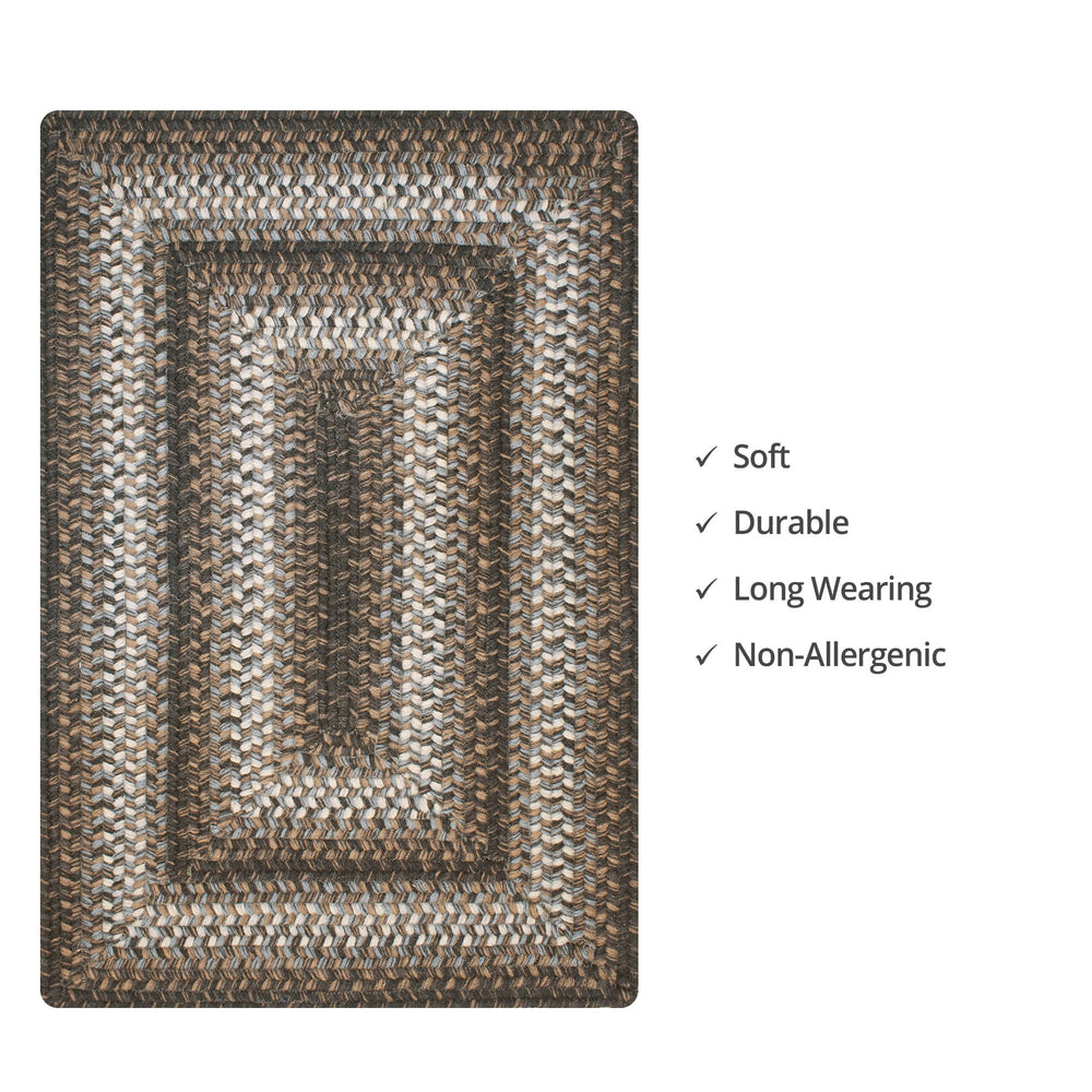 Add soothing color and pattern to your living room, bedroom, or gathering space with this braided wool rug. A lovely blend of black, brown, and grays, this area rug is the perfect neutral base for any room.