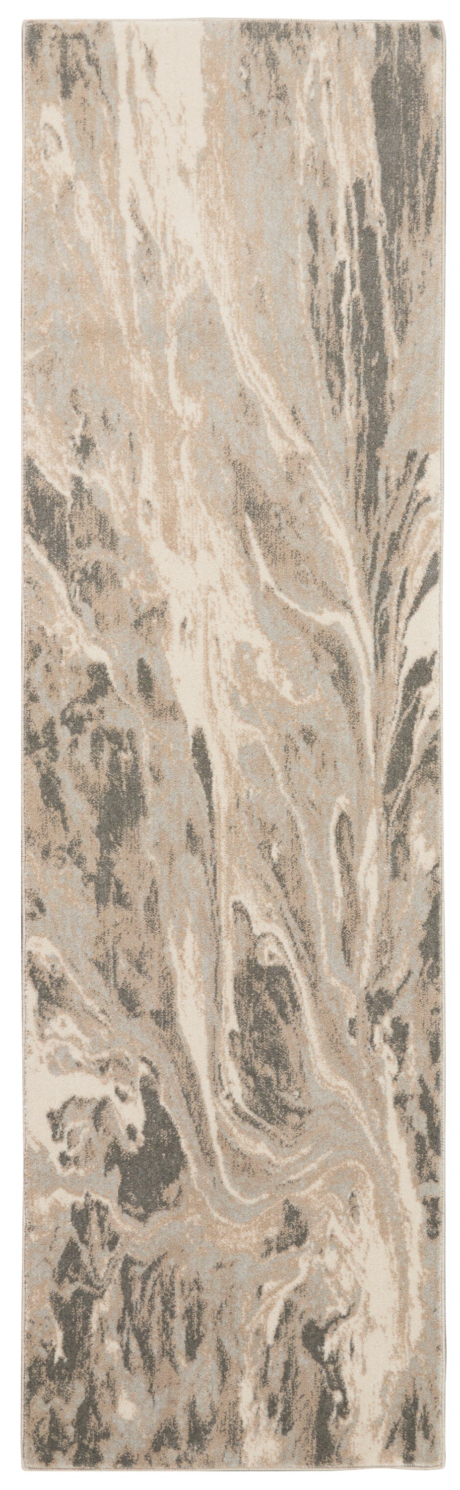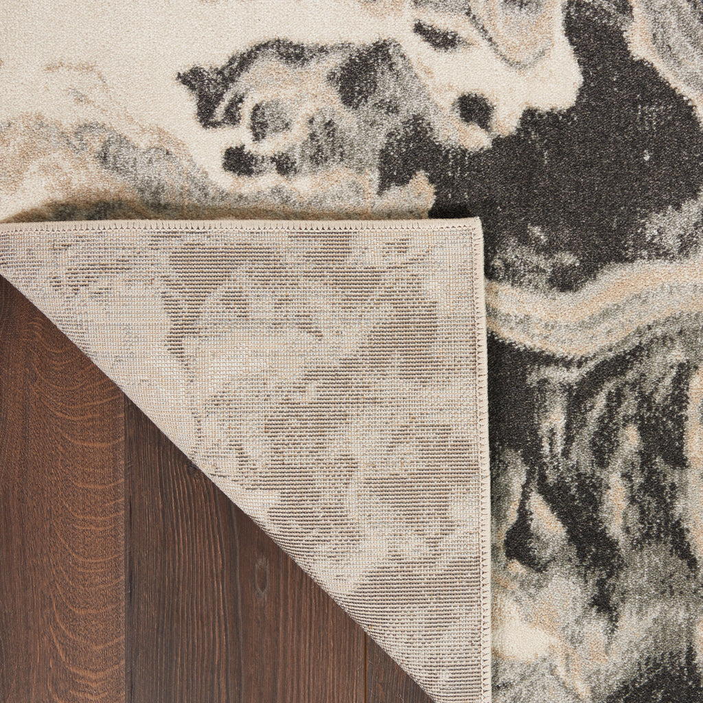 Silvery grey, beige, and cream flow together in an enticing painterly pattern in this Inspire Me! Home Décor contemporary rug from the Elegance Collection. It’s the perfect abstract touch to bring cosmopolitan chic to your favorite room.