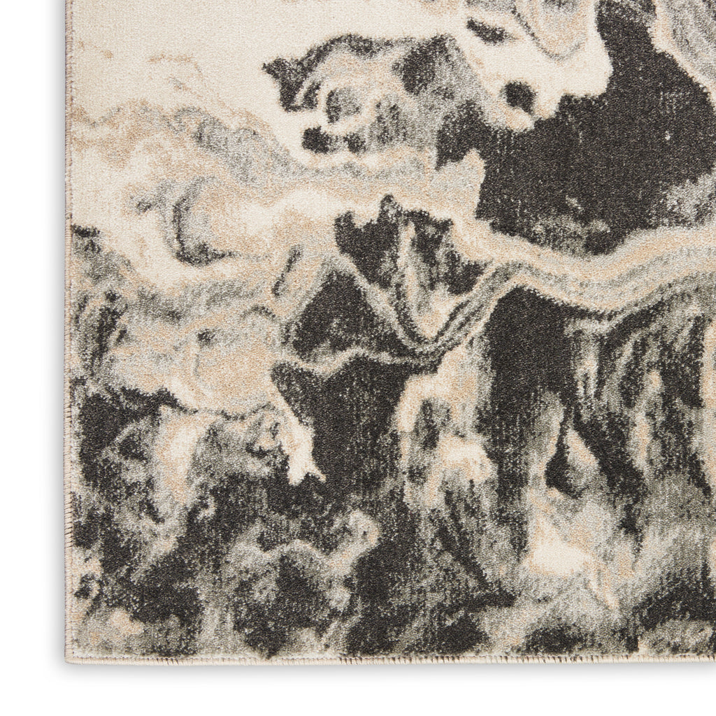 - Flowing marbled abstract patterns in deep charcoal grey and cream white