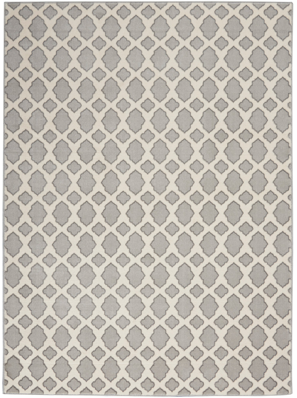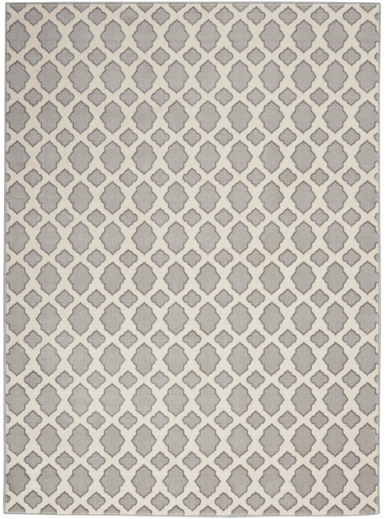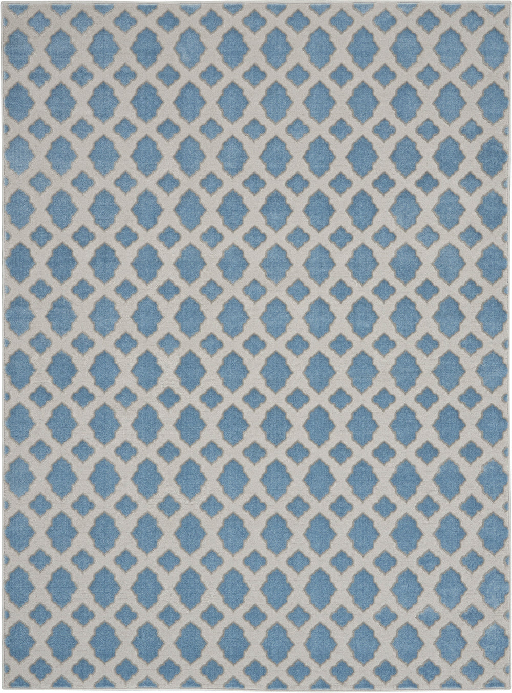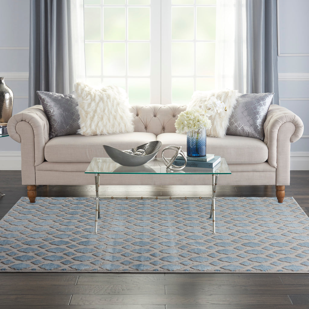 Fuzzy logic takes on fresh appeal in the soft lines of this Joli Collection rug, updated from a classic diamond-grid pattern. The dove-grey graphic works in beautiful harmony with the muted blue ground. This contemporary rug is power-loomed for low-shed, low-pile appeal.