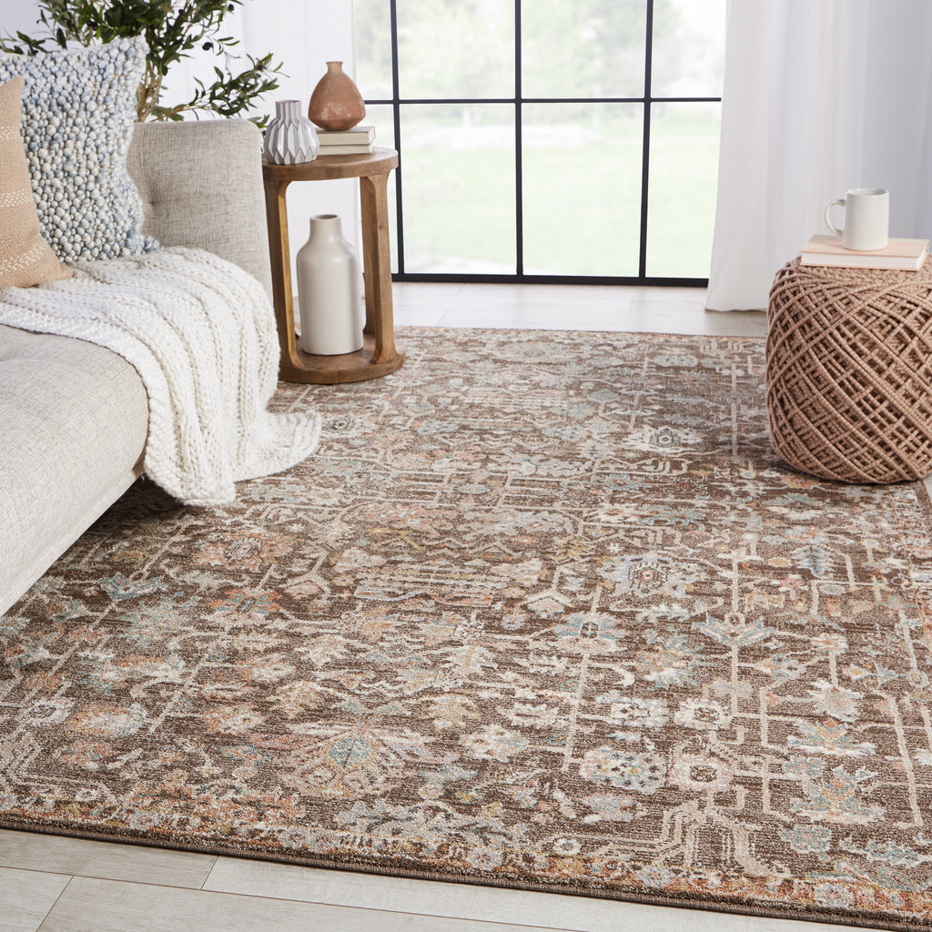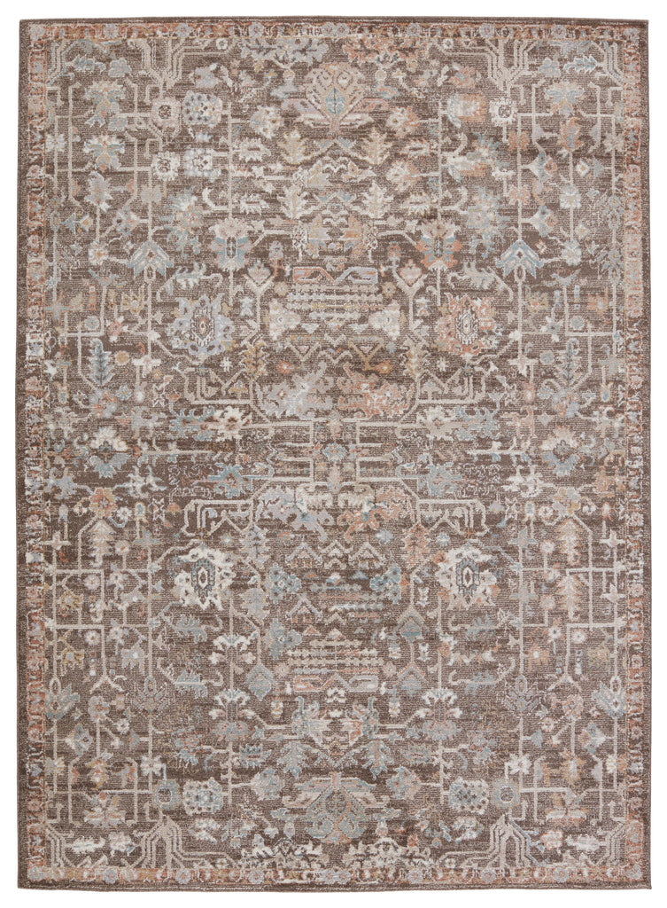 The Abrielle collection features a stunning assortment of traditional designs, updated with beautiful pastel and neutral hues. The Mariette rug grounds any room with an easy-to-decorate floral and lattice motif. Texture-rich striations in the brown and gray colorway emulate the handmade craftmanship of vintage textiles. This durable polypropylene rug is ideal for high-traffic spaces like living rooms, dining areas, and foyers.Care Instructions