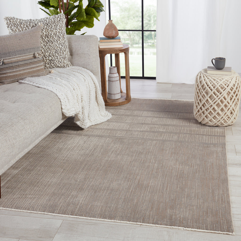 The simple and stylish Aura collection boasts a complementary mix of neutral tones combined with modern, linear motifs. The versatile Ewan rug grounds any space with a unique linear pattern and tonal gray hues. Soft and lustrous, this chameleon-like design emulates the timeless look of a hand-knotted rug, but in an accessible polyester and viscose power-loomed quality.Care Instructions