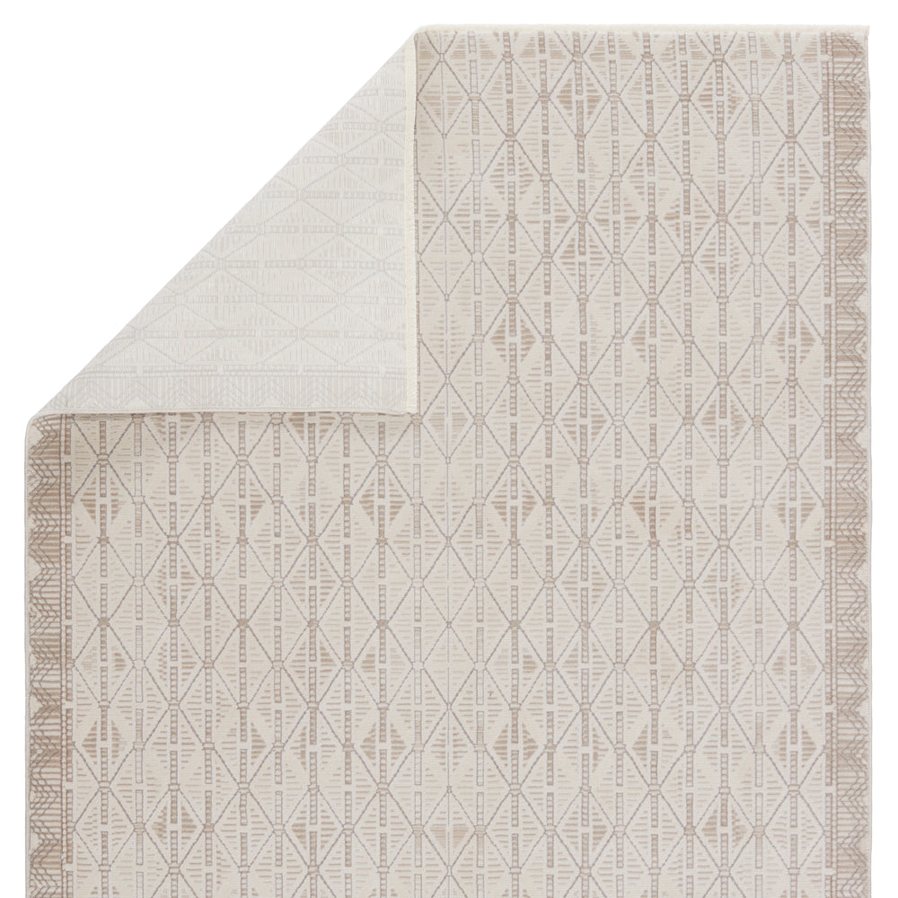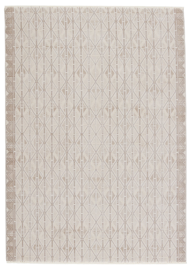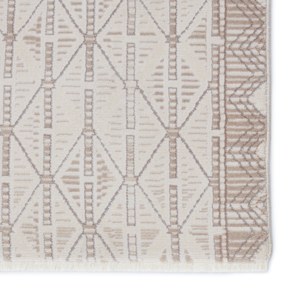 The simple and stylish Aura collection boasts a complementary mix of neutral tones combined with modern, linear motifs. The versatile Ozias rug grounds any space with a unique tribal pattern and tonal cream and light taupe hues. Soft and lustrous, this chameleon-like design emulates the timeless look of a hand-knotted rug, but in an accessible polyester and viscose power-loomed quality.Care Instructions