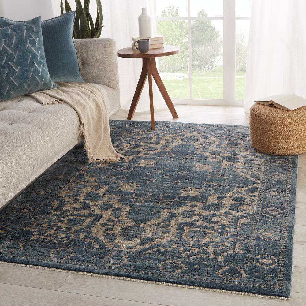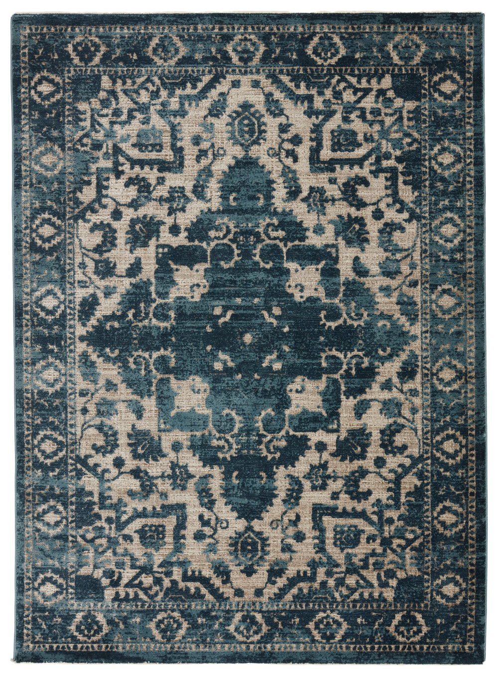 Beautifully textured to emulate vintage textiles, the Brienne collection combines the carved, detailed look of handmade rugs with the contemporary touch of power-loomed innovation. The Idella rug features an ornate, textural center medallion in a statement colorway of blue, beige, and soft gray. This polyester and polypropylene rug is durable, resistant to stains, and perfect for high-traffic areas.Care Instructions