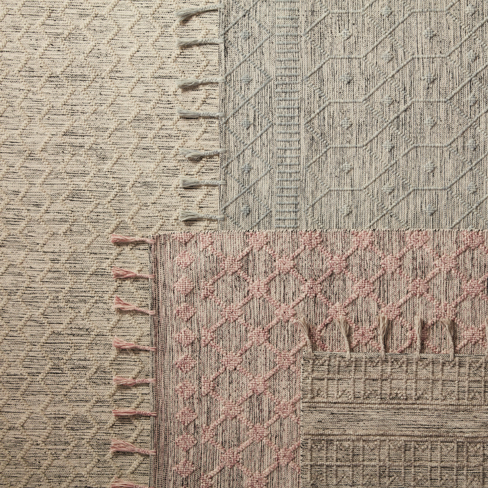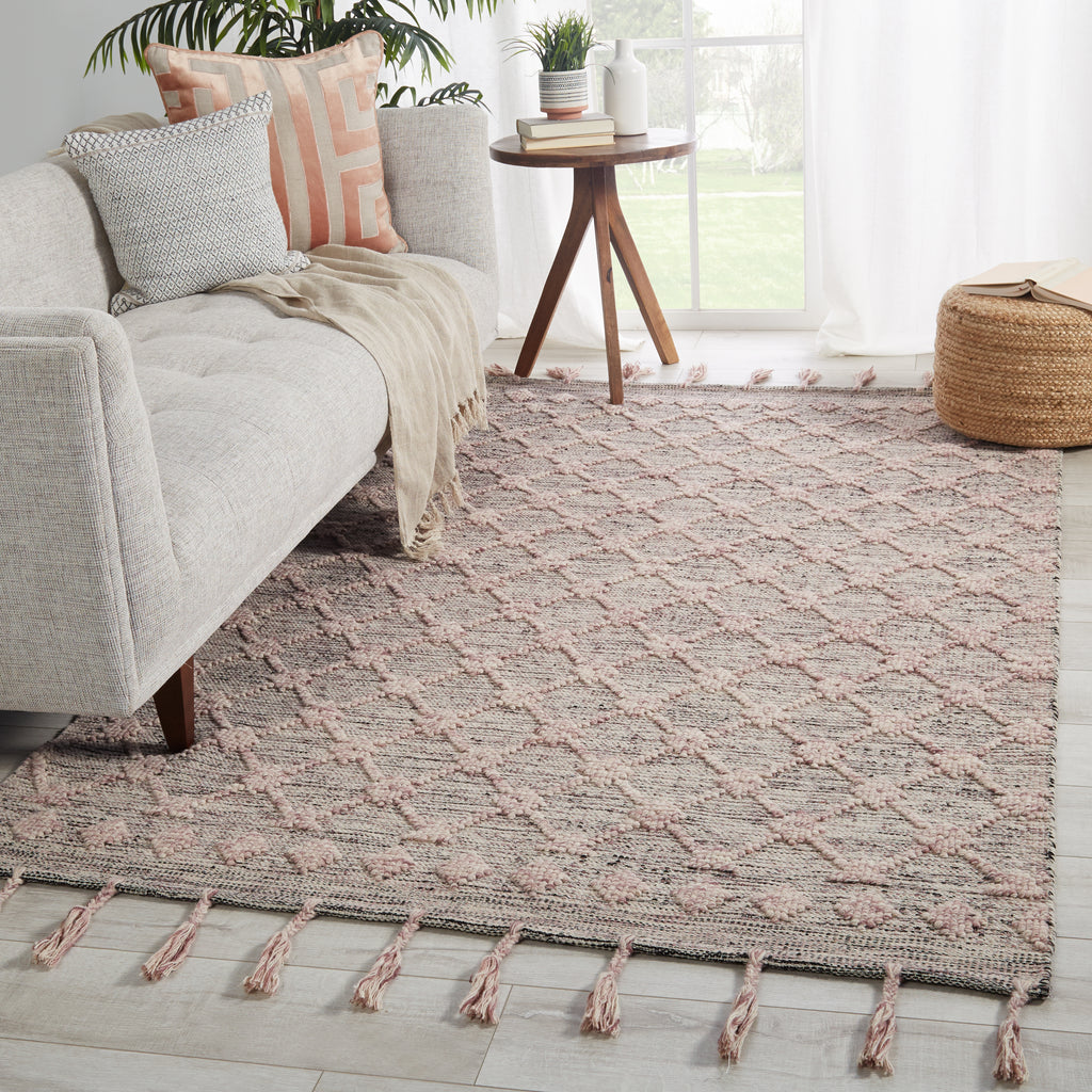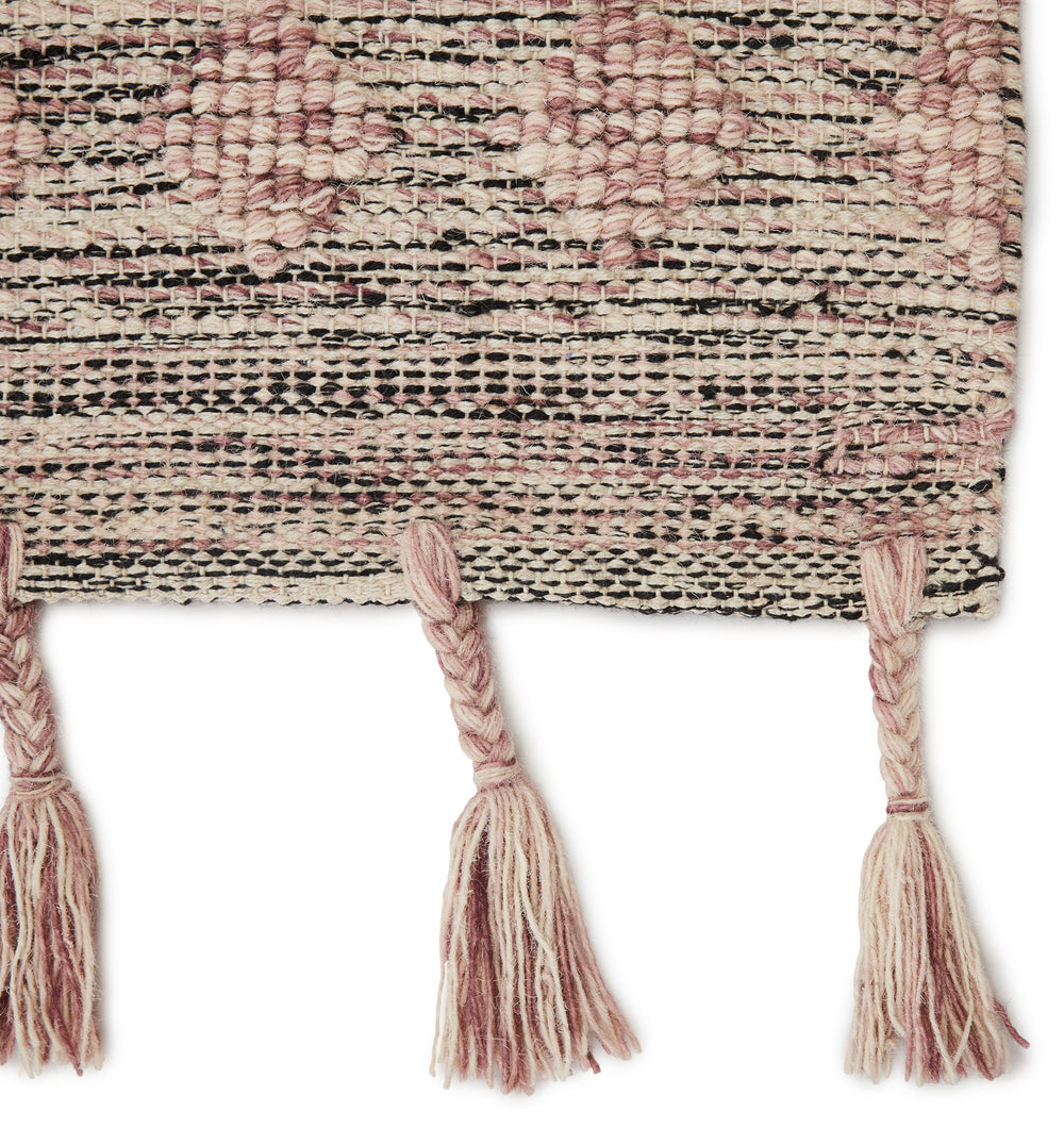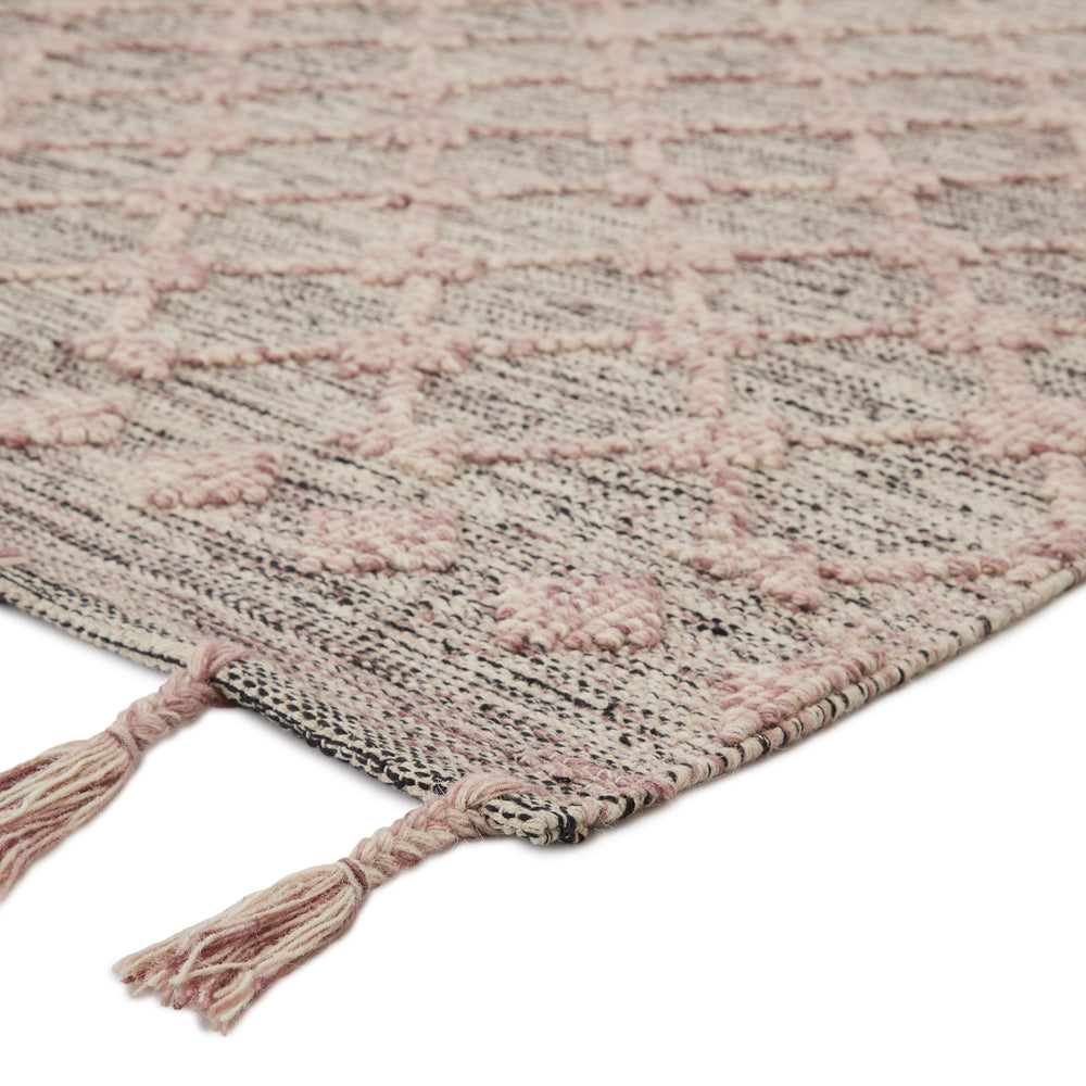 The casual and contemporary Calixta collection boasts an assortment of flatweave designs made of hand-carded wool that lend both texture and comfort to any room. The Madrona rug features a dusty pink colorway with interwoven yarns of black and cream for added dimension and depth. The raised boucle lattice motif and braided fringe details lend a global vibe to this handcrafted rug.Care Instructions