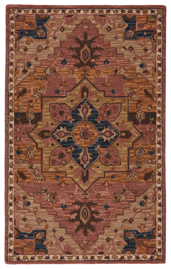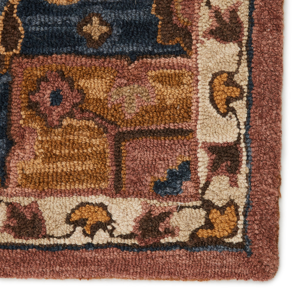 The hand-tufted Cardamom collection boasts vivid jewel tones and uniquely distressed Turkish motifs, crafted to emulate traditional sun-faded, vintage designs. The Cressida rug showcases a stunning medallion motif in a rich color palette of dusty pink, gold, brown, and deep blue. Inspired by the artistic imperfection of dye-lot changes in perfectly aged wool textiles, the looped pile of this rug features tonal colorway depth and textural dimension.