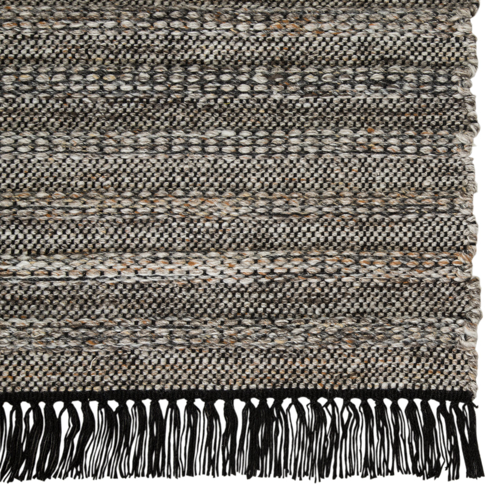 The handwoven Castillo collection features a soft feel and relaxed, versatile style. The Torre area rug showcases a rich blend of black, gray, and rust tan tones for a grounding, neutral look. Crafted of PET yarn, or recycled plastic, this durable and textured rug brings warmth and inviting appeal to indoor and outdoor spaces.Care Instructions
