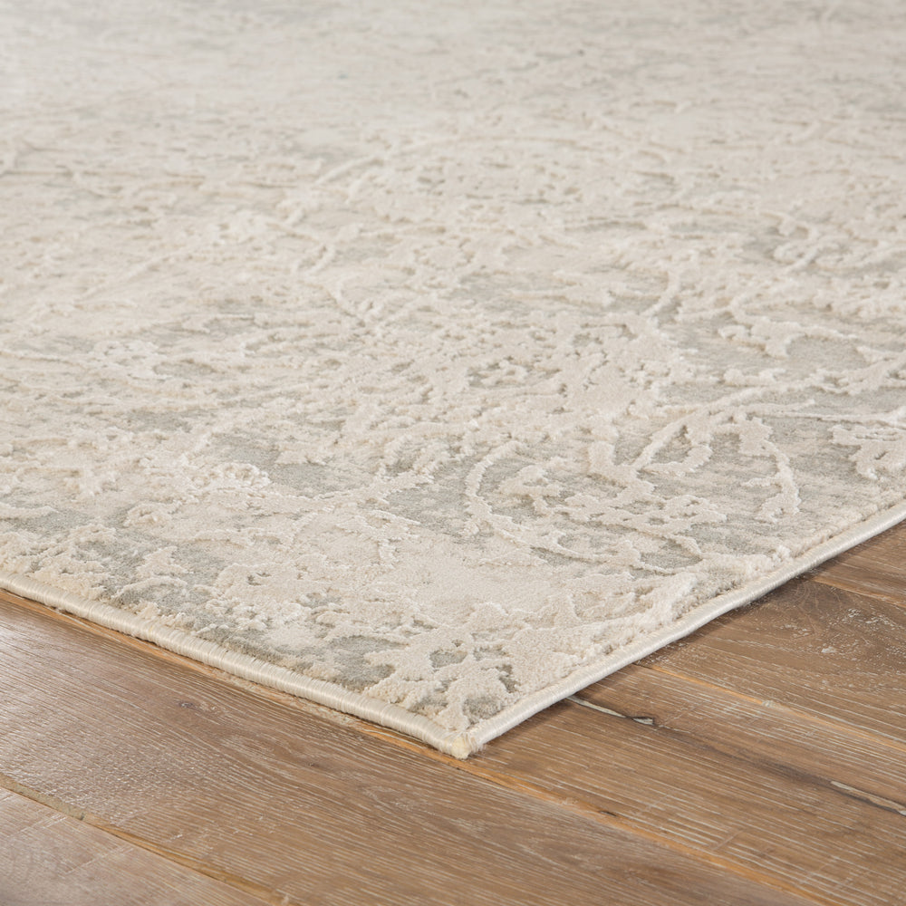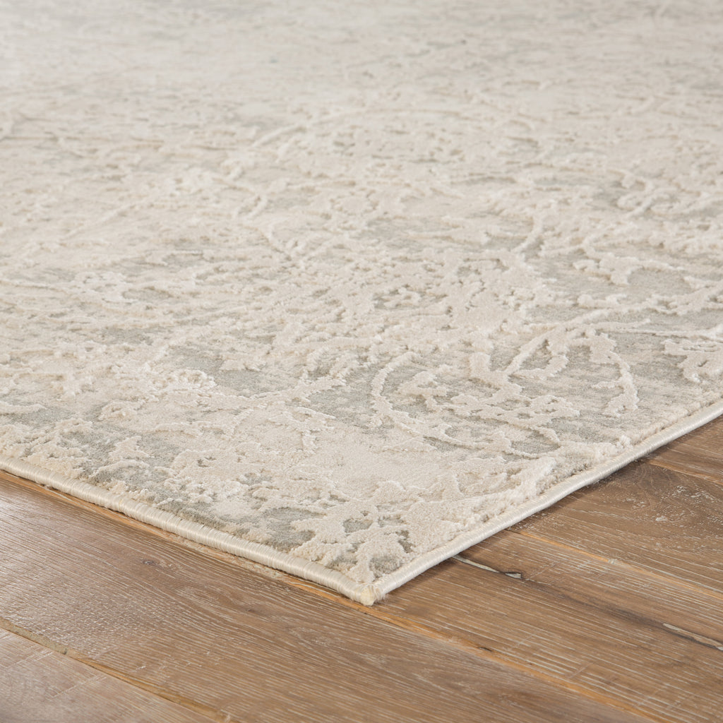 Muted color tones and distressed damask patterning combine to create the transitional appeal of this power-loomed area rug. Lustrous for a luxe touch, the viscose and polyester blend lends an incredibly soft feel to this sleek gray and white accent.