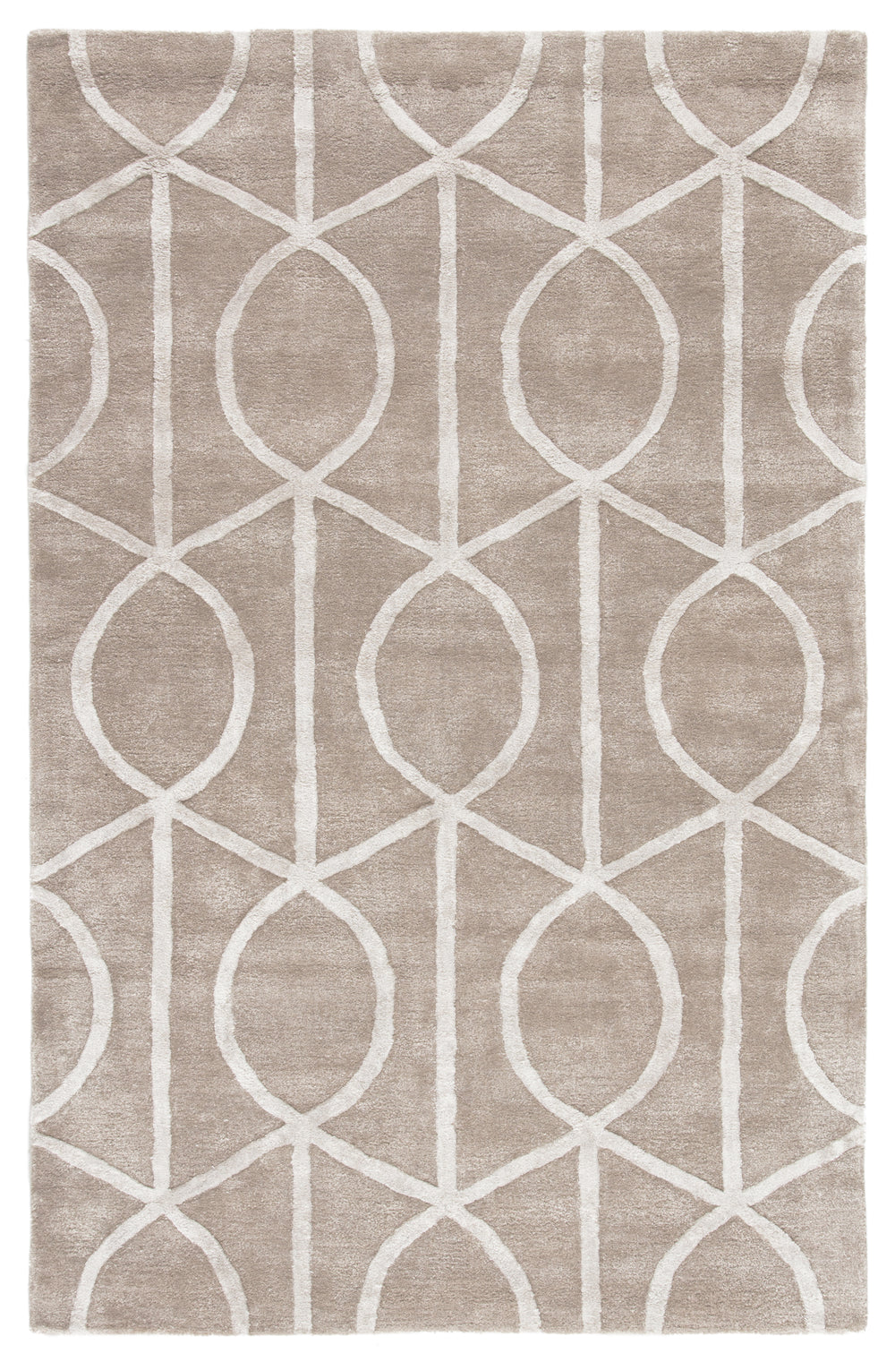 Large-scaled geometric patterning defines the contemporary style of this hand-tufted area rug. Viscose adds a sumptuously soft feel to the durable wool layer, lending rich and inviting texture to this subtly lustrous accent. A chic white on light gray colorway creates a hint of contrast along the recurring trellis design.Care Instructions