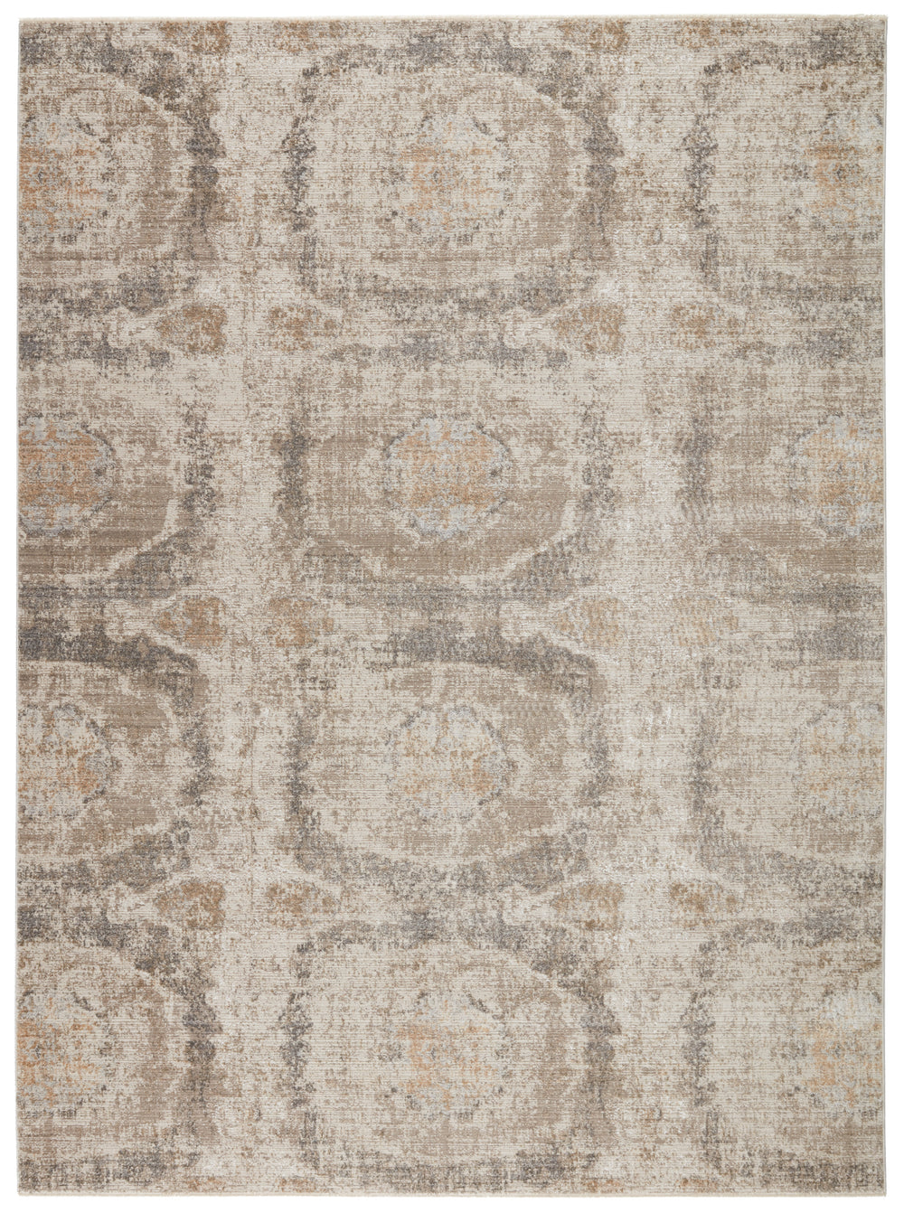 The stunning En Blanc collection captures the elegance of neutral, vintage-inspired patterns and melds Old World aesthetics with an updated and luxurious vibe. The Airi rug boasts a distressed, repeat medallion motif in tonal hues of gray, tan, and light taupe. Soft and lustrous, this chameleon-like design emulates the timeless style of a Turkish hand-knotted rug, but in an accessible polyester and viscose power-loomed quality.Care Instructions