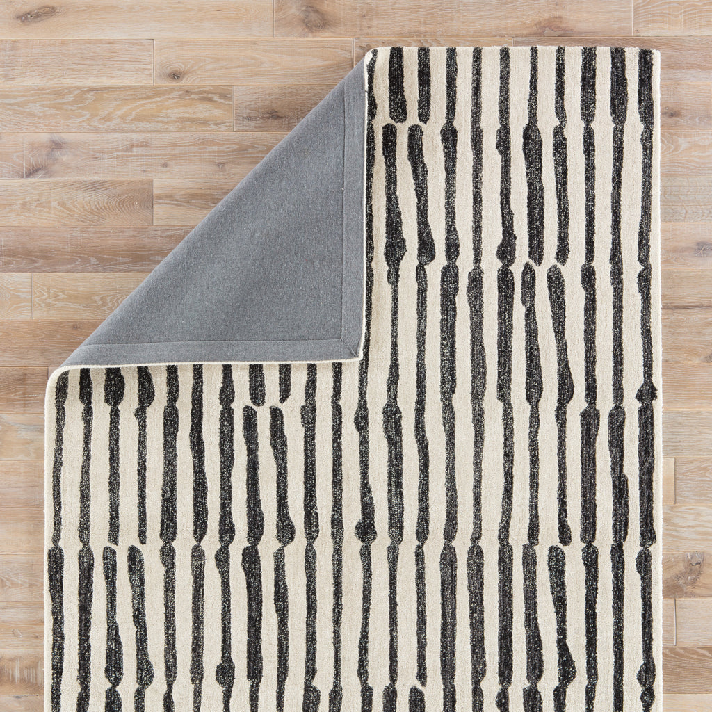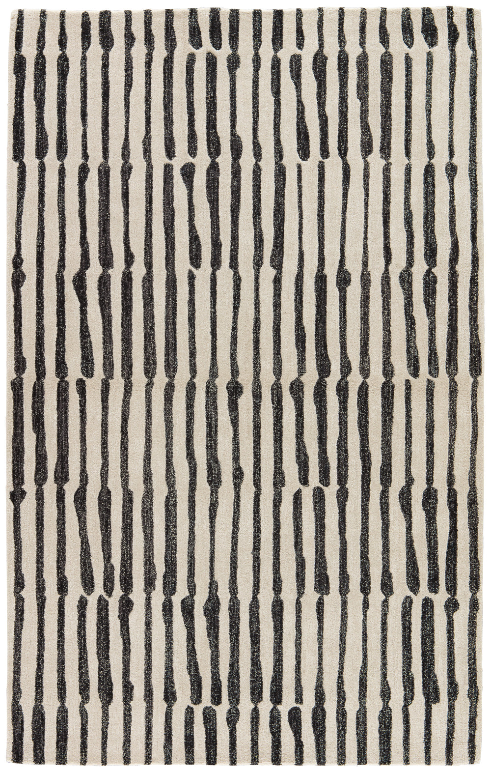 A fusion of abstract modernity and global inspiration, this hand-tufted Nikki Chi area rug proves transitional with a unique and organic design. This pattern-rich wool and viscose layer showcases a classic black and white colorway for bold contrast and striking visual texture.