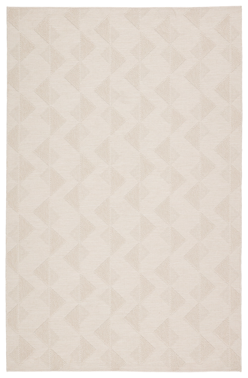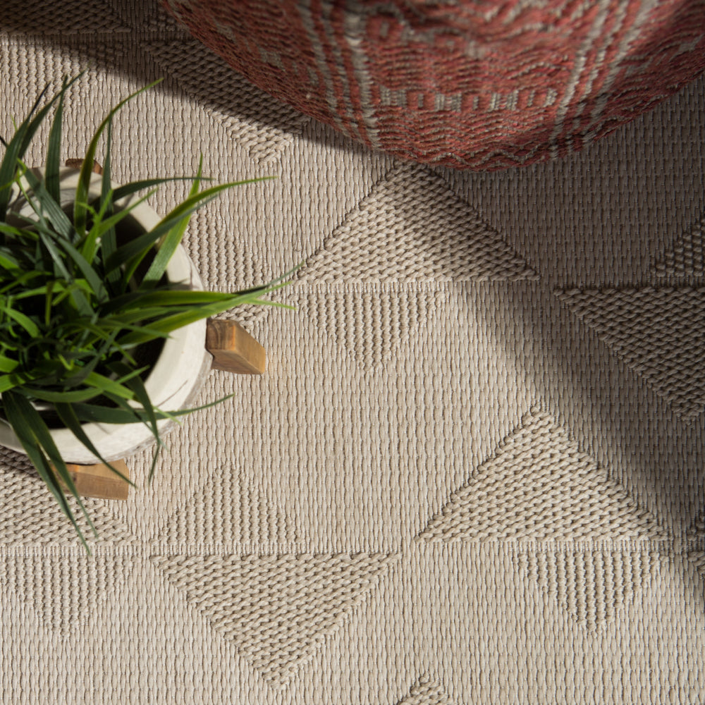 The Fresno collection lends a relaxed, casual feel to outdoor spaces and high-traffic indoor areas. The solid cream Zemira area rug features an asymmetrical triangle motif that creates a global look and unique texture. Made of durable polypropylene and polyester, this flatweave rug offers versatility and an easy-care foundation to any space.Care Instructions