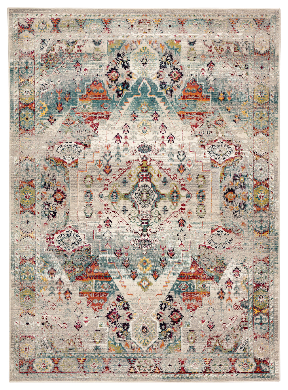 Mixing a vintage-inspired design with contemporary hues, the Indie collection brings vibrancy and unique style to indoor and outdoor spaces. The Farra rug showcases an intricate medallion pattern in a vivid multicolor and gray palette. Crafted of weather-resistant polypropylene, this updated traditional rug boasts ribbed pile that emulates classic hand-knotted construction.