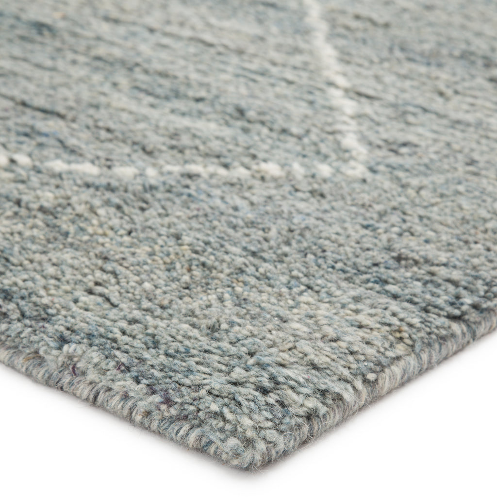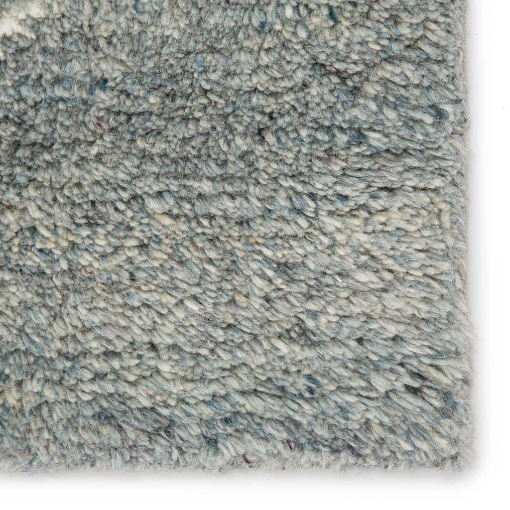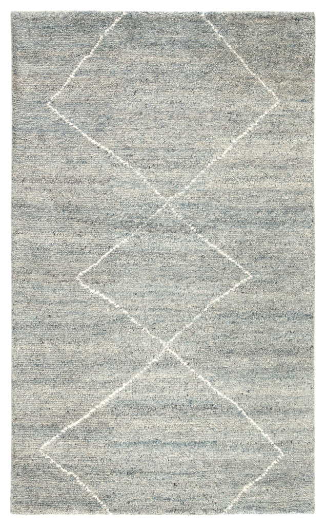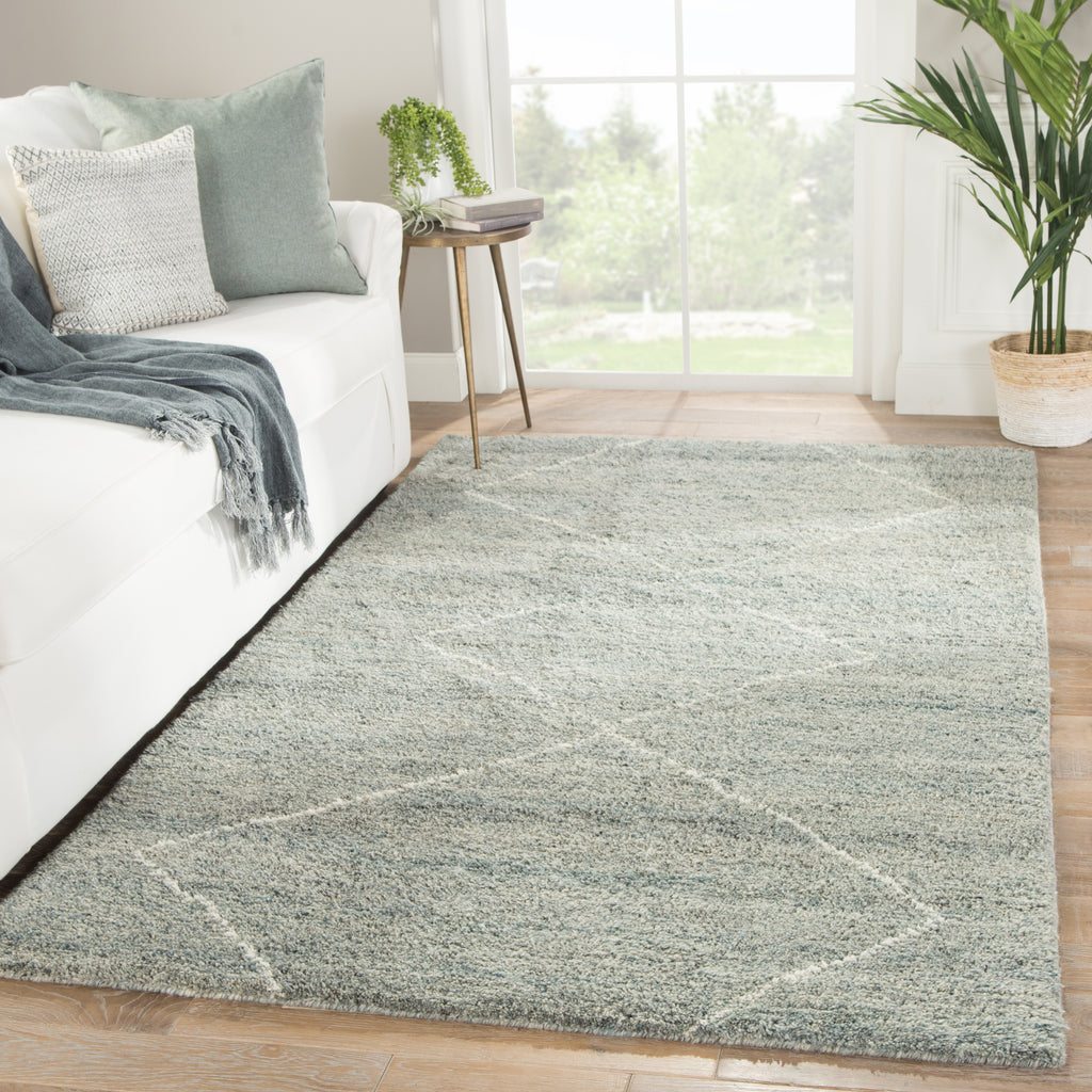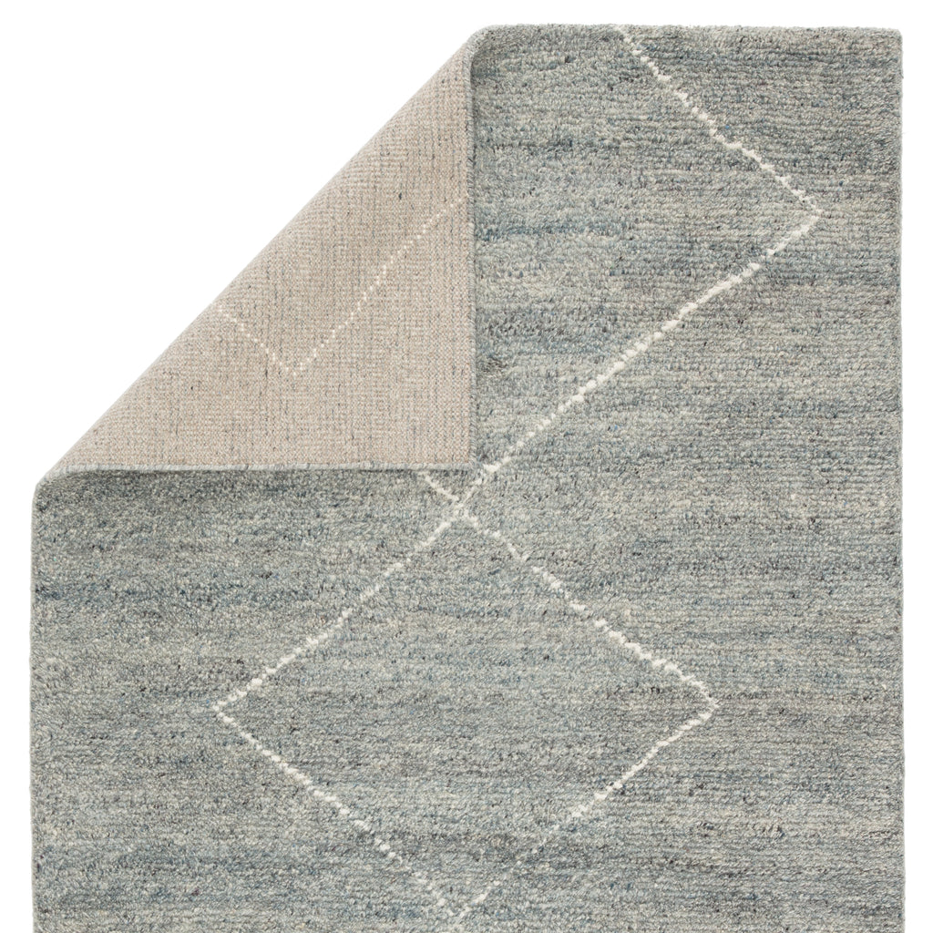 Simple and yet beautifully textured for a global vibe, the Mina collection features hand-crafted Moroccan designs. The hand-knotted Renee area rug boasts a soft blue and ivory colorway, authentic and shaggy wool pile, and minimalistic diamond shapes for the perfect grounding piece in any modern space.