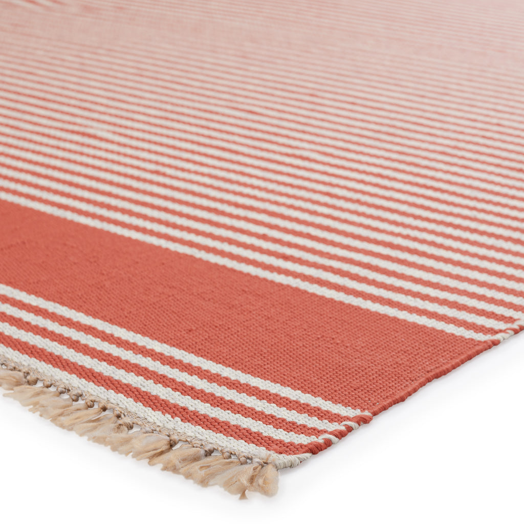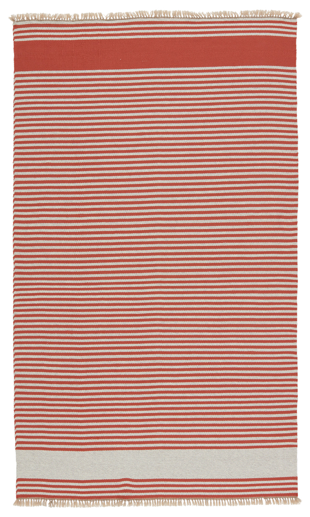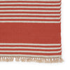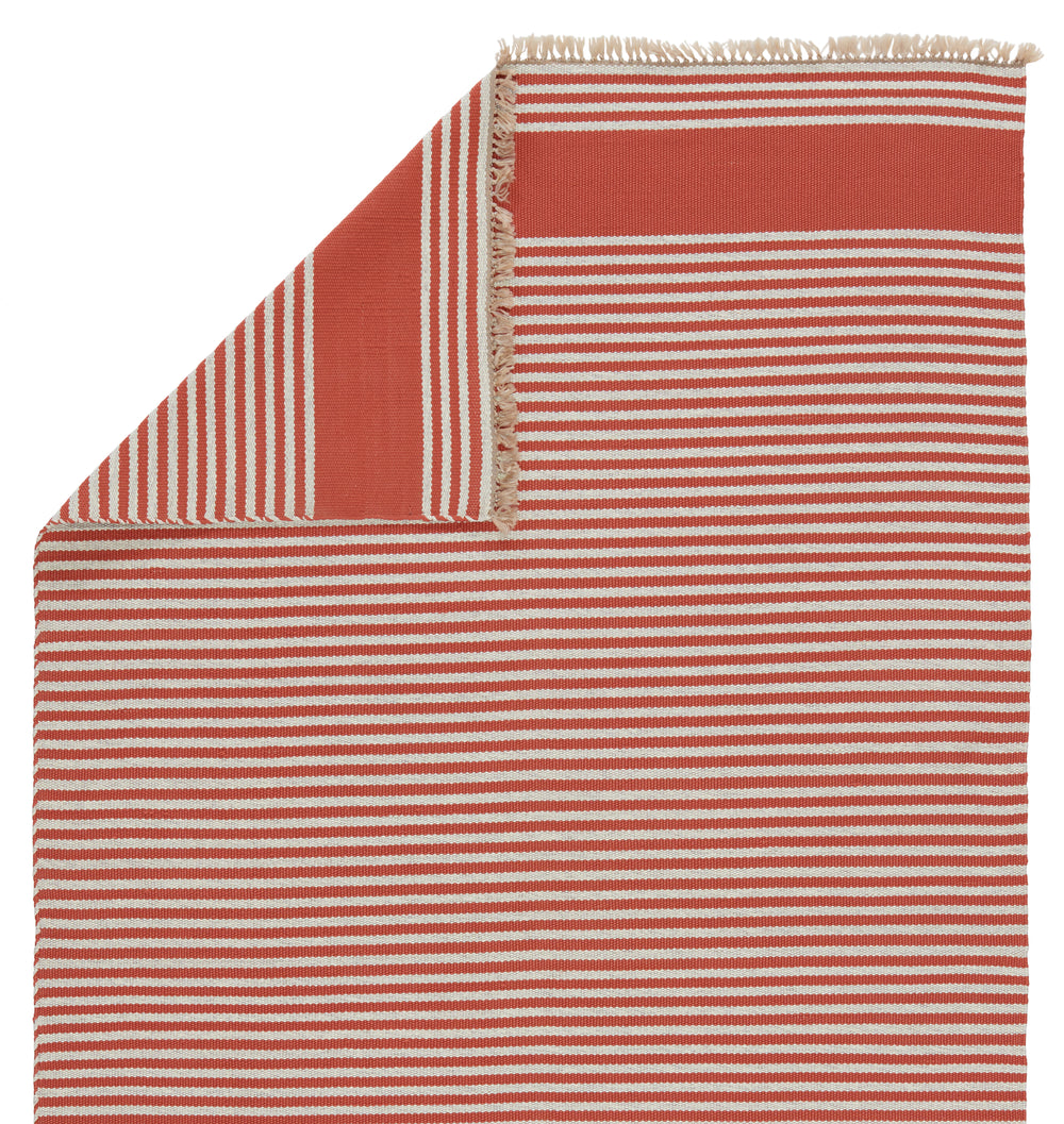 Relaxed and sophisticated in the same moment, the Morro Bay collection is a chic assortment of coastal-inspired dhurrie designs. The ticking stripe Strand rug complements both indoor and outdoor spaces with a versatile colorway of rust red and beige. Handwoven of durable polypropylene, this low-profile rug is easy to clean and perfect for high-traffic areas.