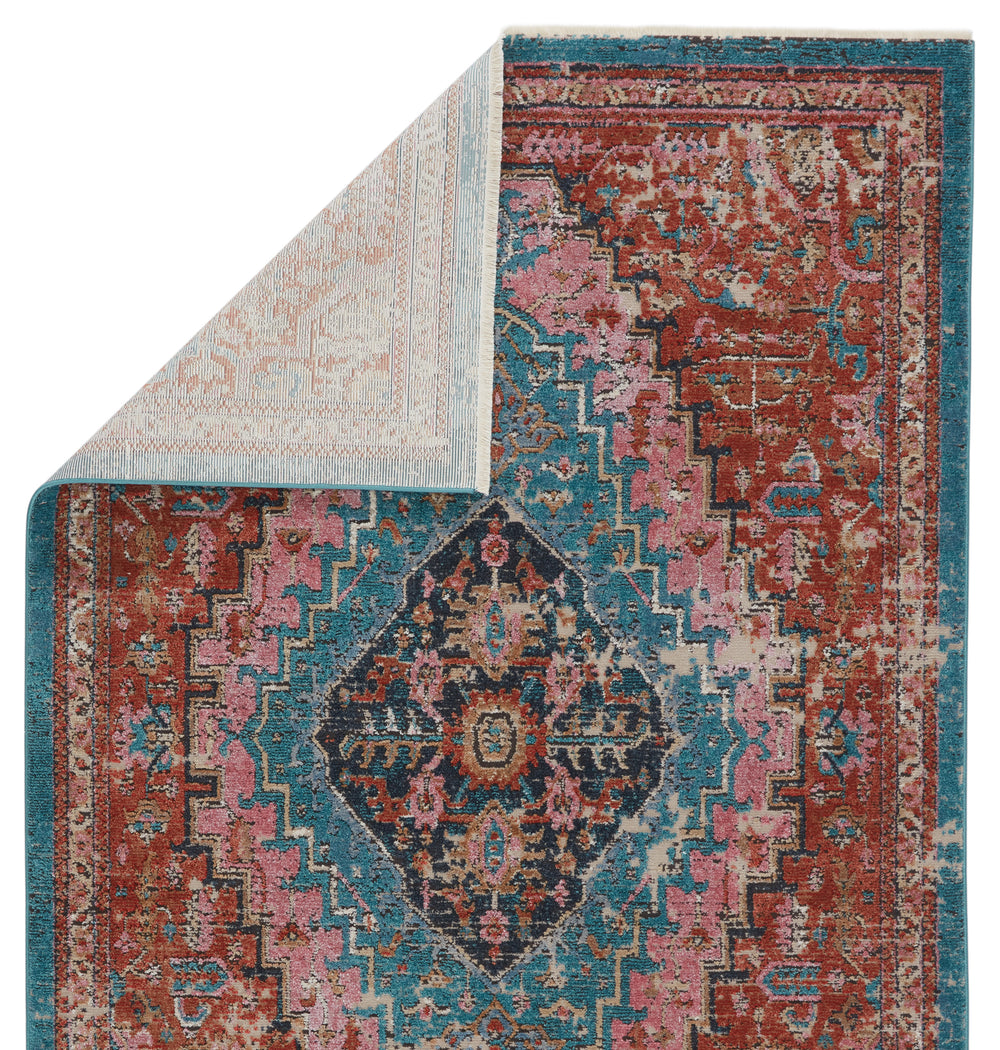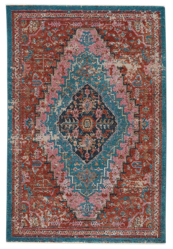 Inspired by the vintage perfection of sun-bathed Turkish designs, the Myriad collection is warm and inviting with faded yet moody hues. The Marielle rug boasts an elegantly distressed, bohemian medallion in tones of rust, teal, pink, and blue. This power-loomed rug features a plush and durable blend of polyester and polypropylene, lending the ideal accent to high-traffic spaces.Care Instructions
