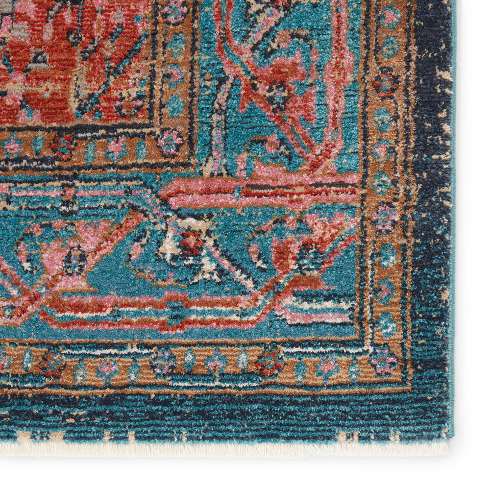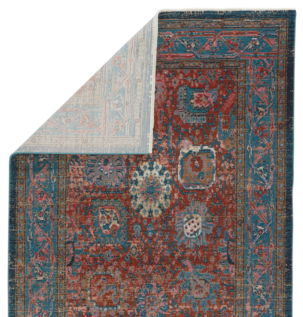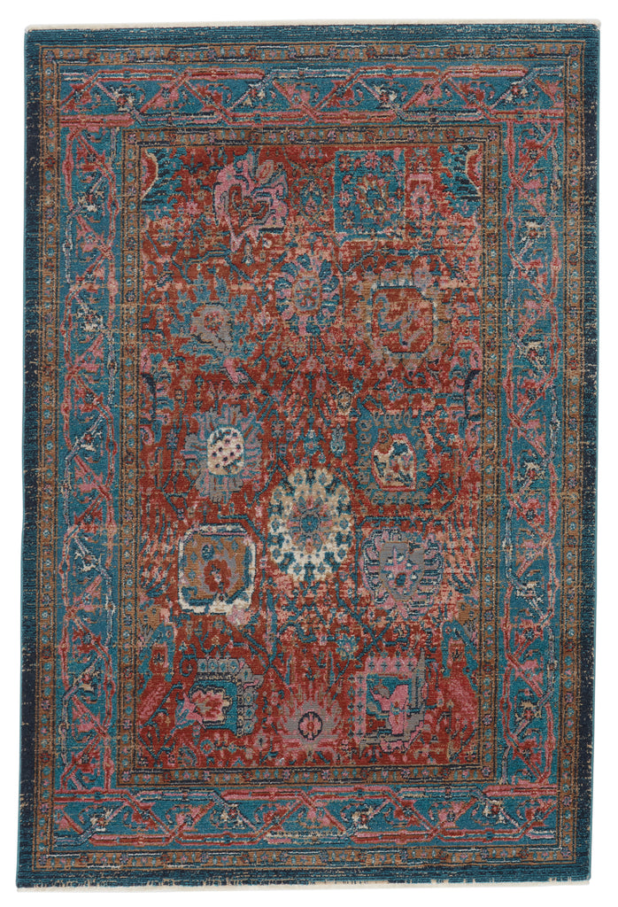 Inspired by the vintage perfection of sun-bathed Turkish designs, the Myriad collection is warm and inviting with faded yet moody hues. The Romilly area rug boasts a vibrant, updated traditional motif that makes a bold statement in teal, rust, pink, and golden tones. This power-loomed rug features a plush and durable blend of polyester and polypropylene, lending the ideal accent to high-traffic spaces.Care Instructions