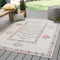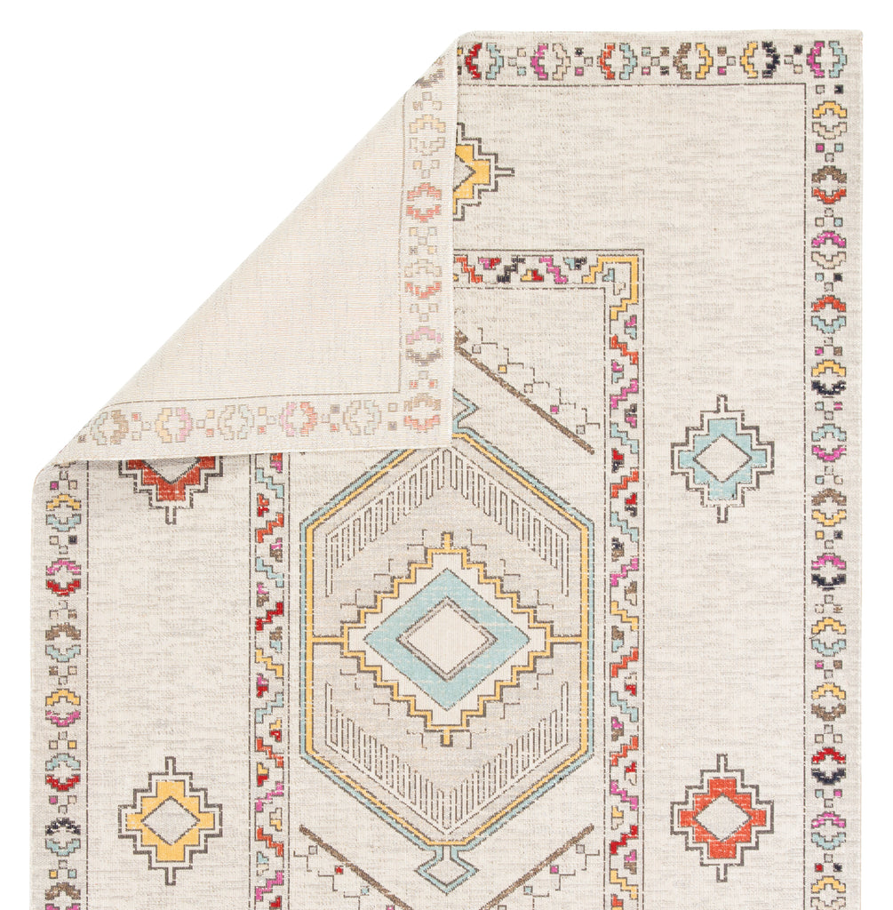 The indoor-outdoor Polaris collection combines admired traditional designs with a durable, light-weight polypropylene construction. The Tov rug is a contemporary take on a Southwestern motif with bright colors and a whimsical vibe. The ivory and multicolored palette highlights the geometric medallion and border design for a fun and fresh look in kitchens, living rooms, or patios.