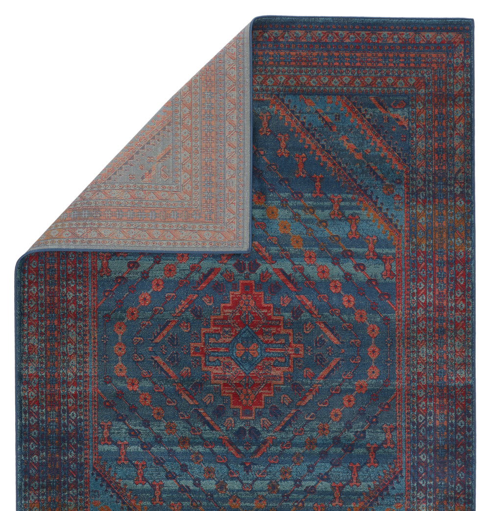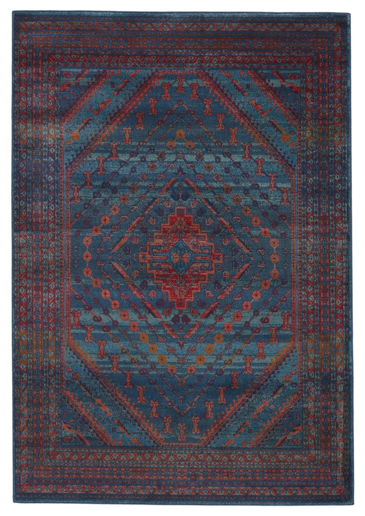 Emulating the bold, saturated colors of vegetable-dyed antique rugs, the innovative Prisma collection combines admired traditional design with a durable polypropylene construction. The Selah rug boasts a finely detailed, geometric medallion in rich tones of blue, red, and ocher. The low pile and easy-to-clean material of this rug proves perfect for high-traffic spaces.Care Instructions
