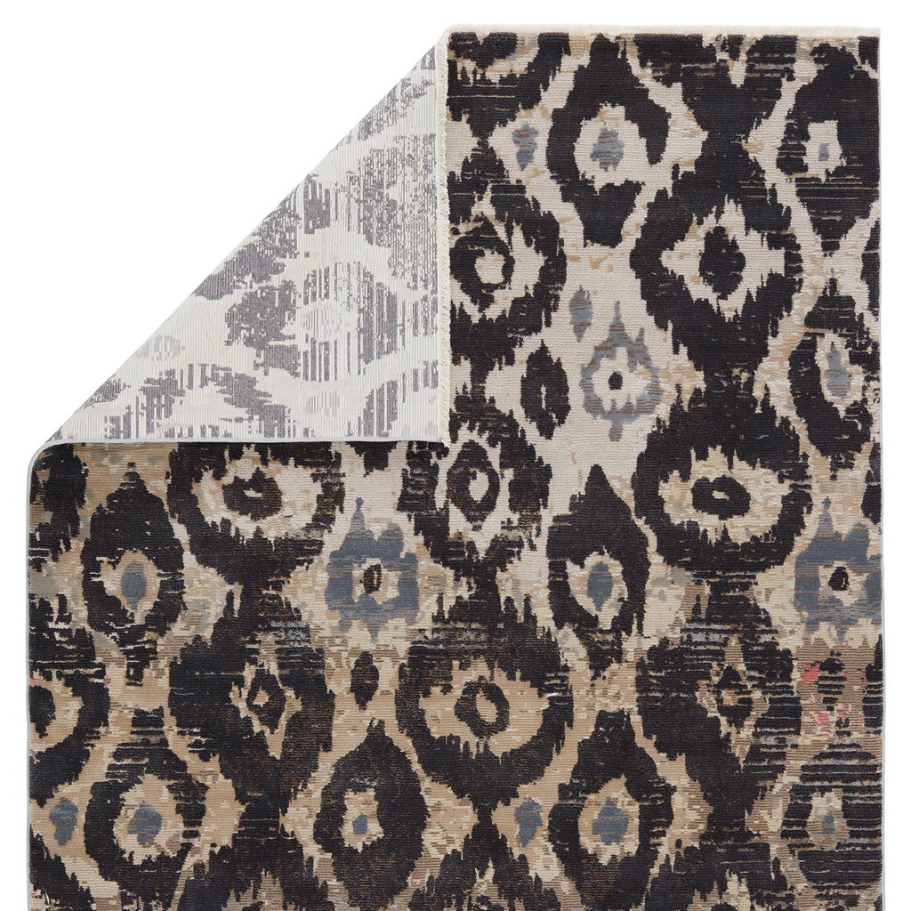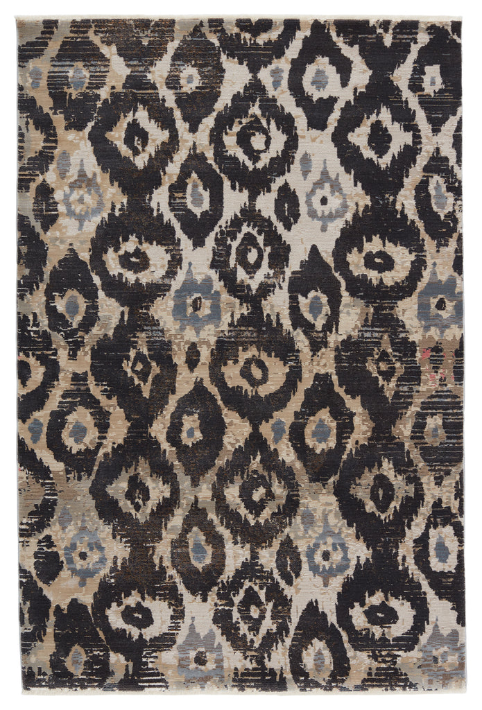 Inspired by the African motifs, the Sanaa collection by Nikki Chu is the perfect combination of statement-making patterns and easy-to-decorate-with hues. The Livio rug boasts a perfectly distressed ikat-inspired design in tones of black, gray, tan, beige, and hints of pink. Ivory fringe trim adds texture and vintage allure. This power-loomed rug features a plush and durable blend of polyester and polypropylene, lending the ideal accent to high-traffic spaces.