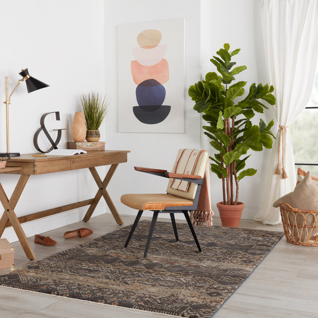 Inspired by the African motifs, the Sanaa collection by Nikki Chu is the perfect combination of statement-making patterns and easy-to-decorate-with hues. The Tamari rug boasts a detail-rich tribal design in tones of deep black, tan, beige, and gray, and hints of bright pink and blush. Ivory fringe trim adds texture and vintage allure. This power-loomed rug features a plush and durable blend of polyester and polypropylene, lending the ideal accent to high-traffic spaces.