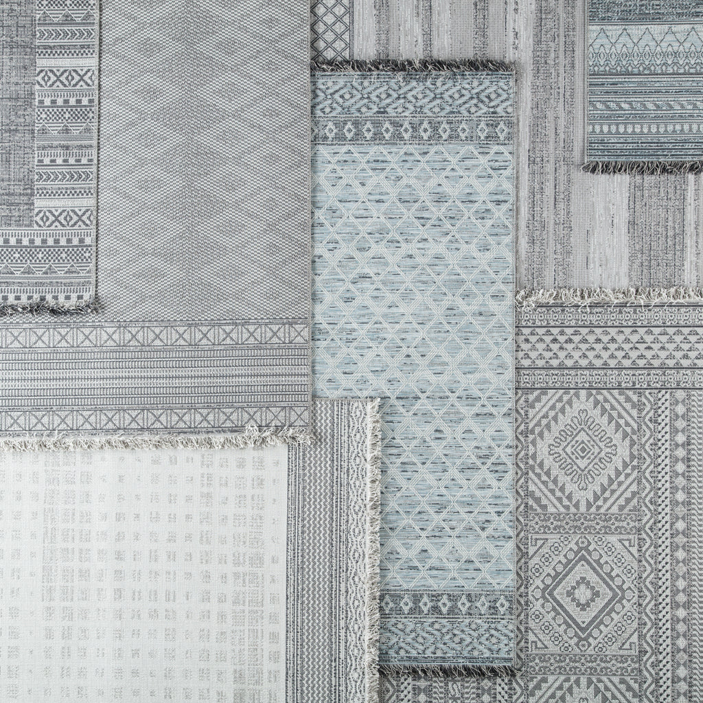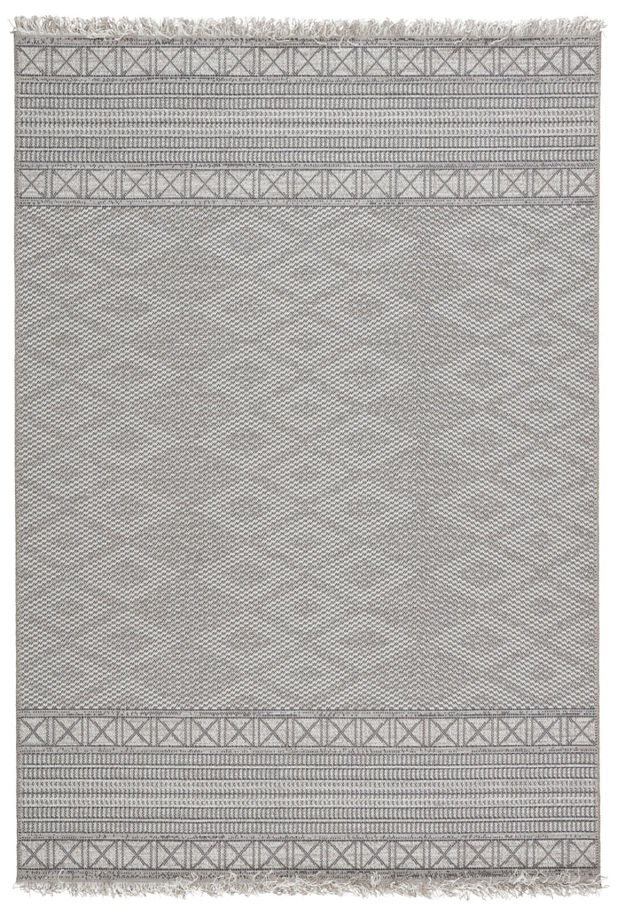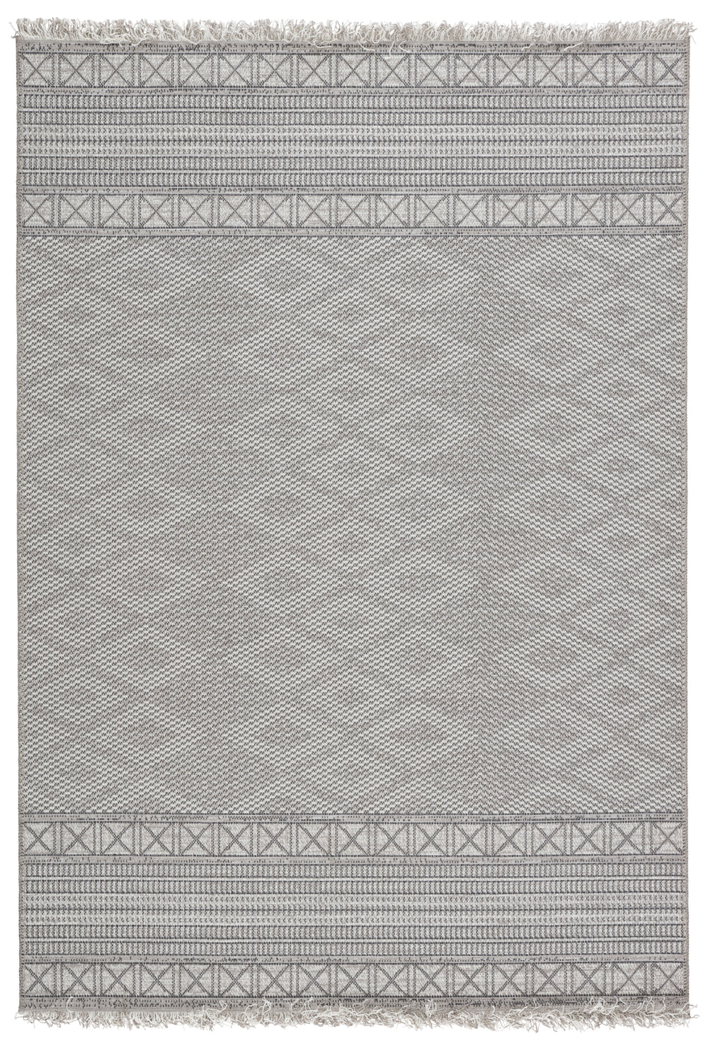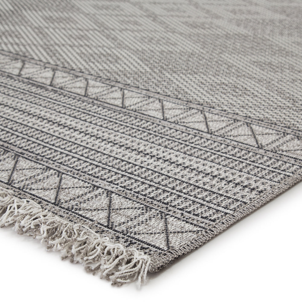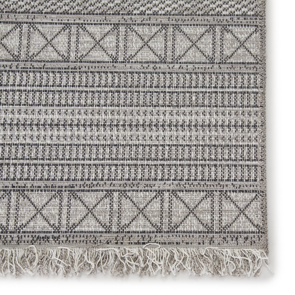 With an assortment of relaxed, bohemian designs, the Tikal collection is the perfect weather-resistant and stylish accent for outdoor and indoor settings. The flat-woven Ramos rug features bands of tribal patterning accented by geometric shapes and texture-rich fringe. The tonal gray colorway offers a versatile decorating palette to any space.Care Instructions