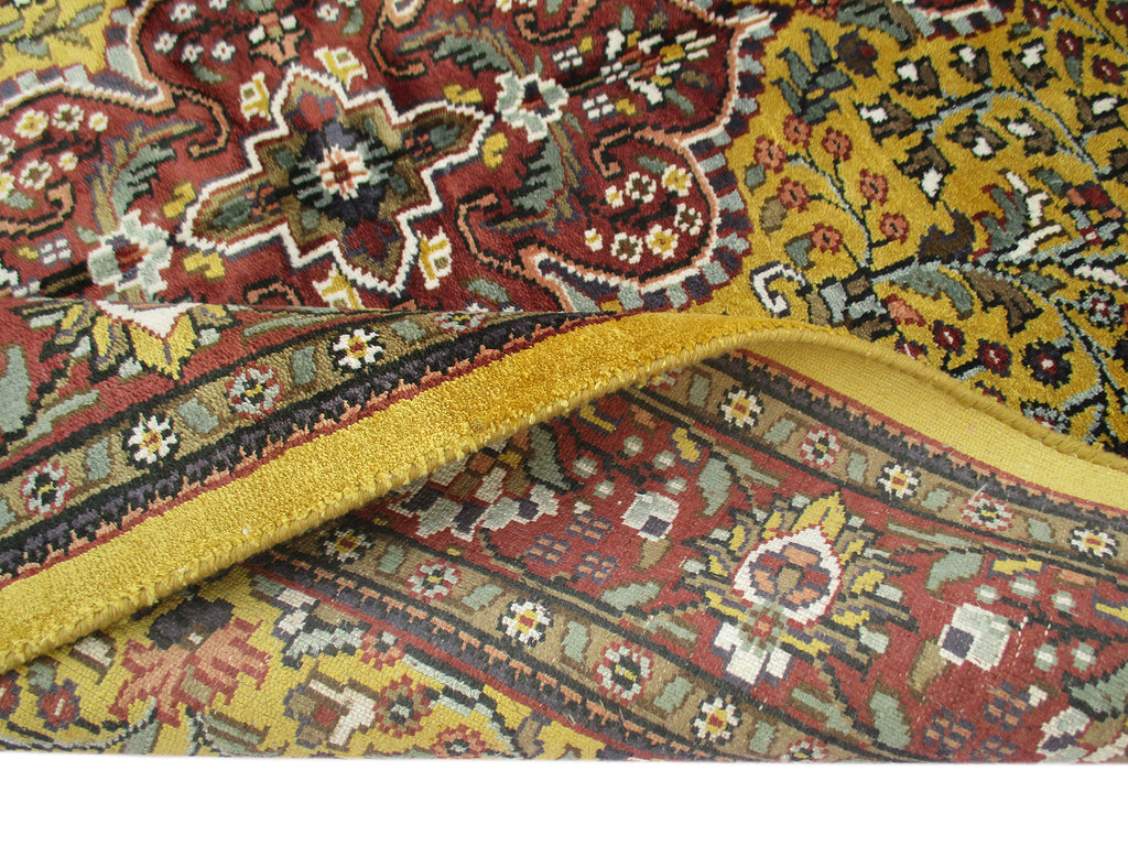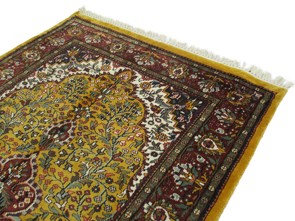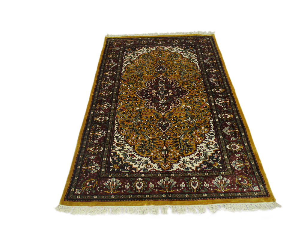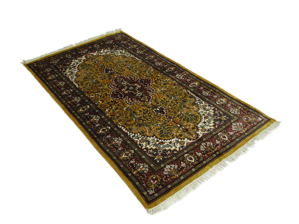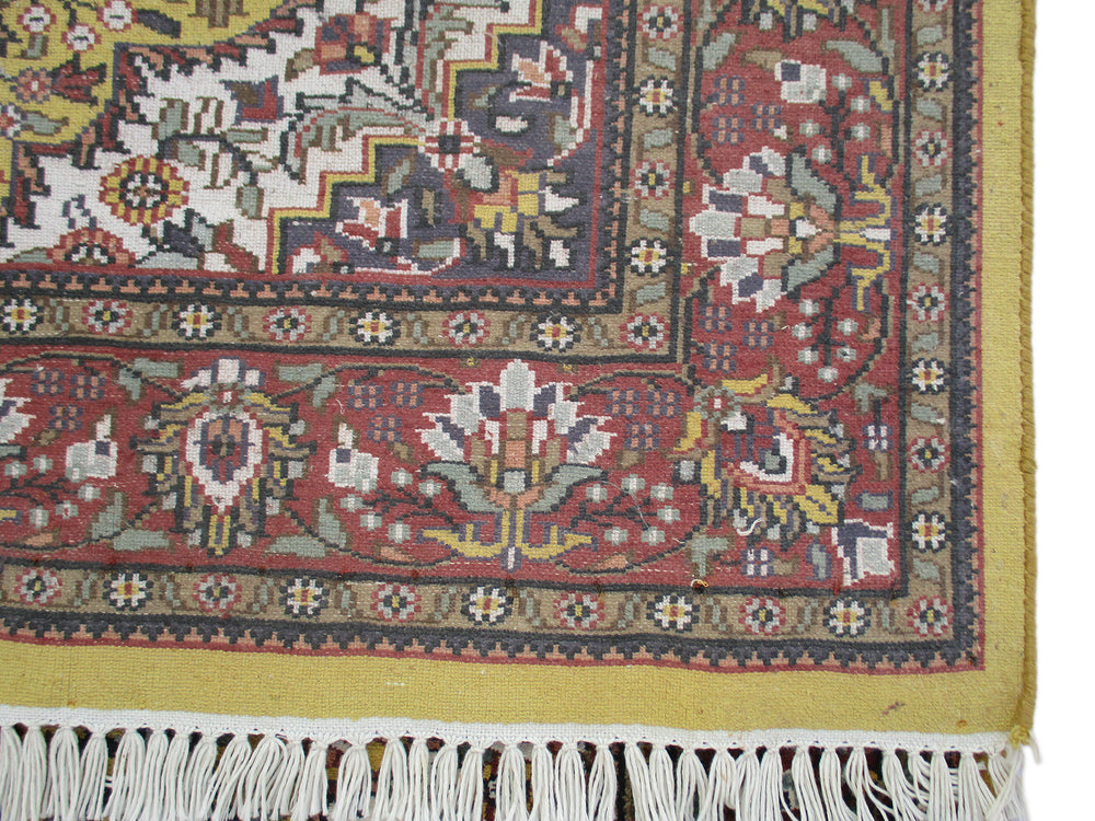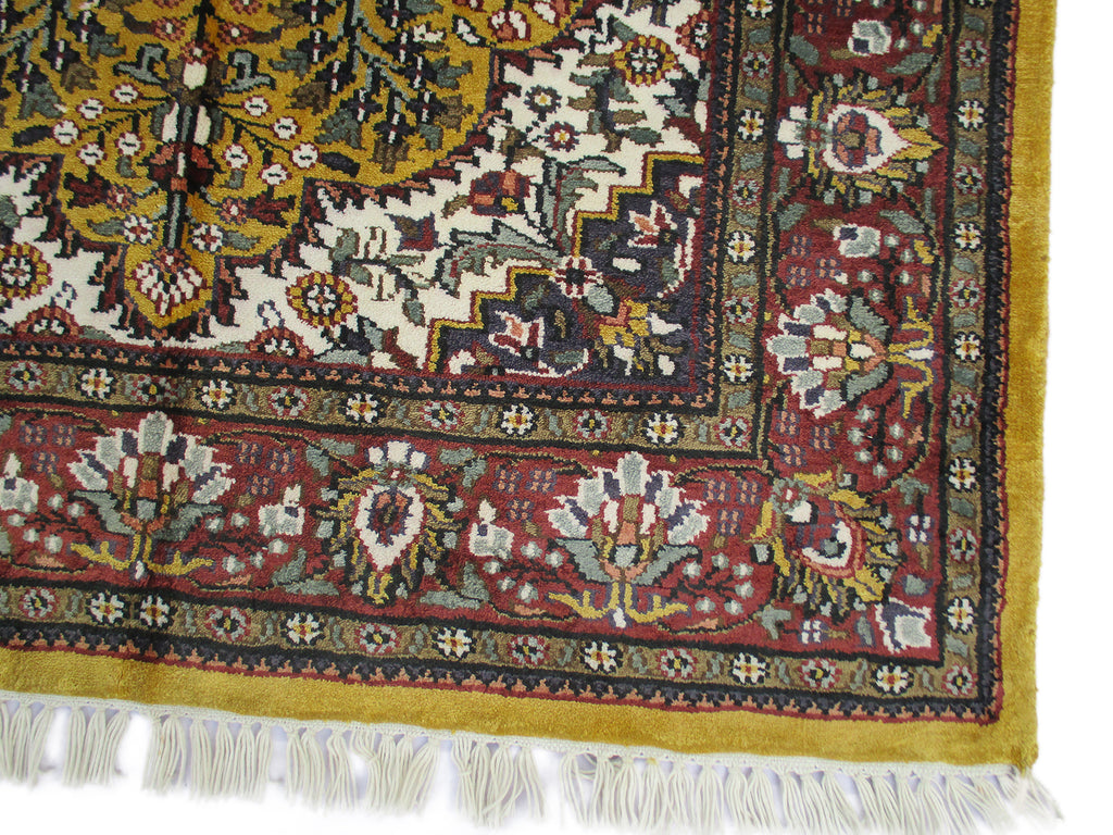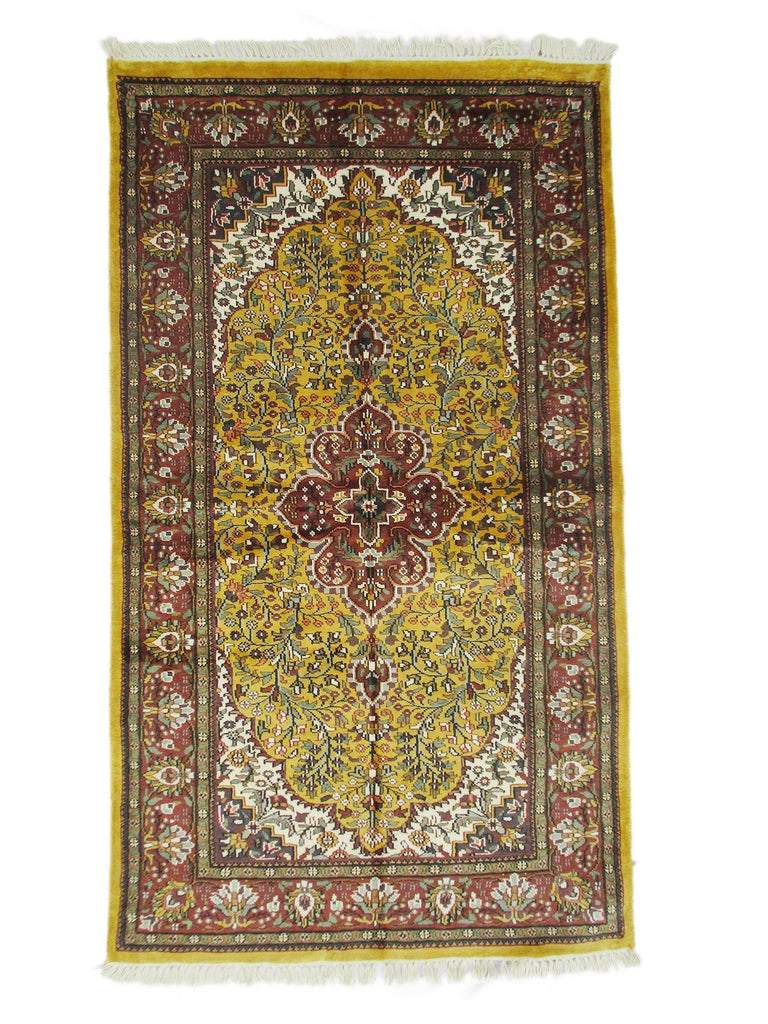 Enrich the look of your room, with this Jaipuri cotton and silk rug designed with prominent yellow and pink shades that sets the standard for quality rug. Traditional design of Jaipuri rug creates the sensation of the tale of Indian community, using symbols of art, culture and tradition to enrich the beauty of your living room, available in 2'11"x4'11" dimension, with contrasting colors of yellow and pink to augment the brightness of the room. Check out the traditional weaving, the dominating yellow shades in the middle that makes the rug very distinctive, which is typically the oriental style of Jaipuri rugs. Overall, this rug has all the oriental features to amaze your guest, a must grab to complement the look of your living room.