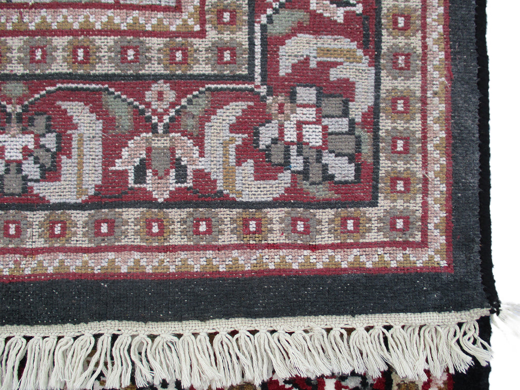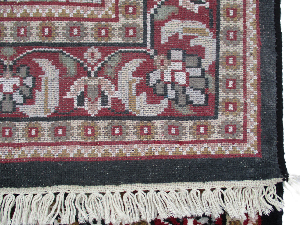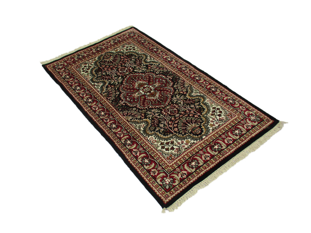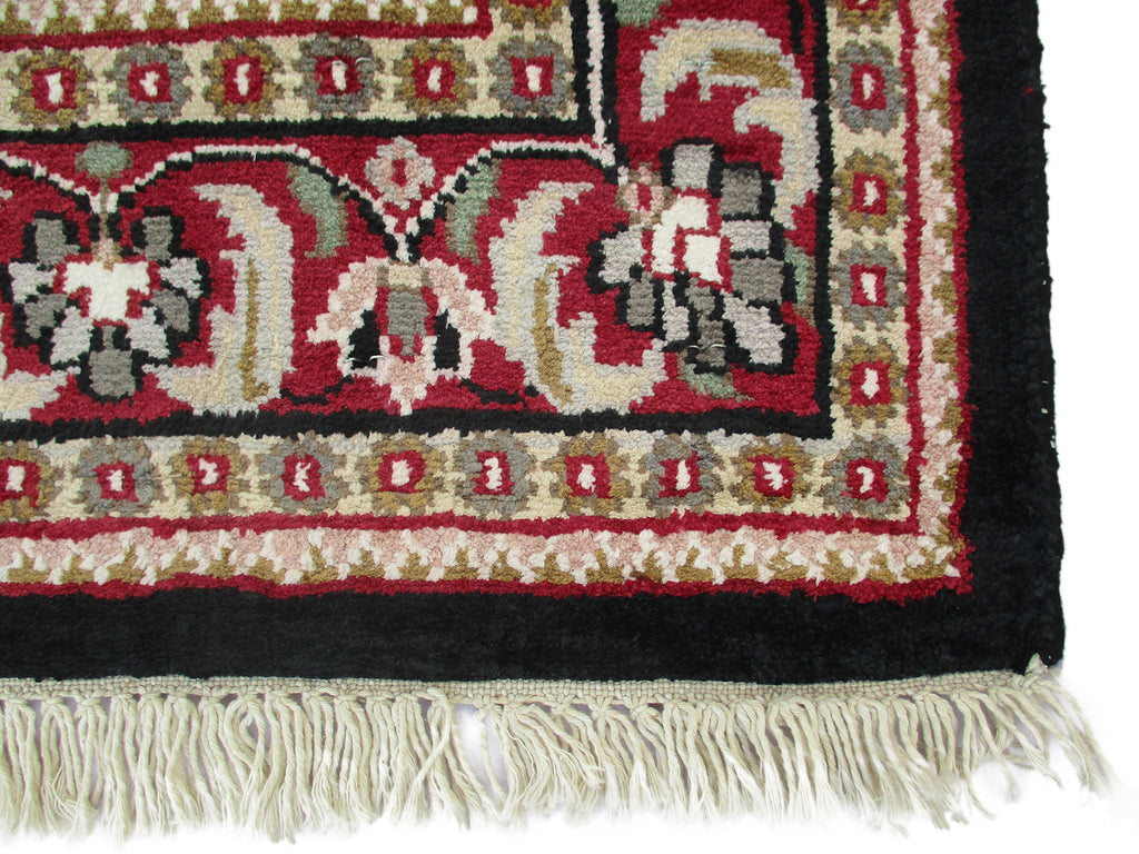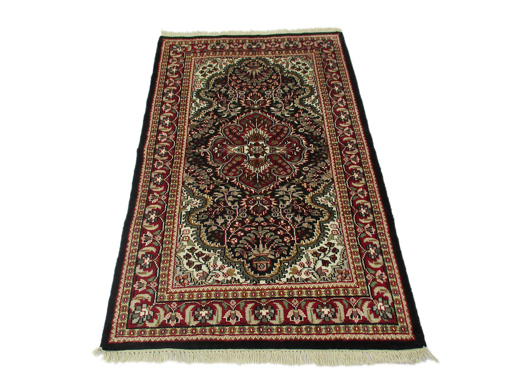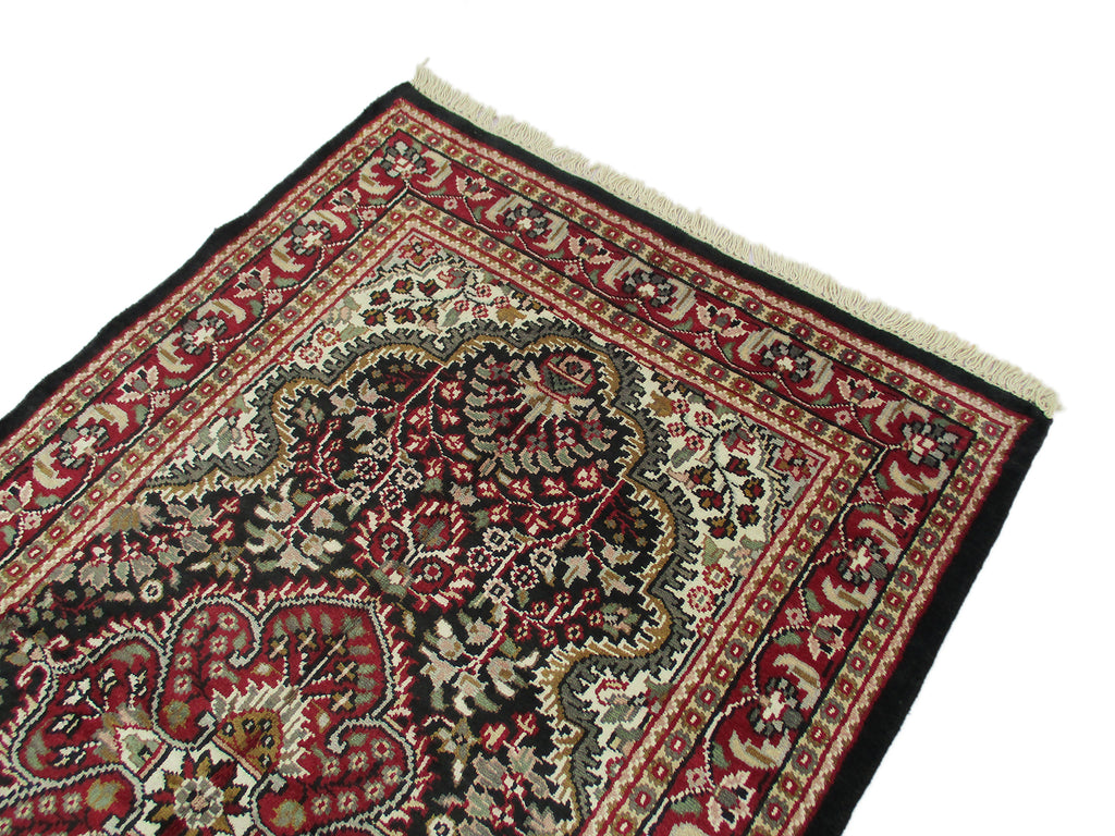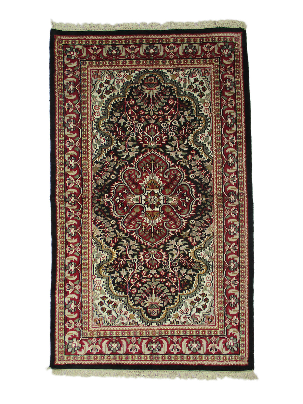 Truly impressive, the Jaipuri cotton and silk rug with prominent red and black shades sets the standard for quality rug design with its oriental and traditional design. Traditional design of Jaipuri rug creates the sensation of the tale of Indian community, using symbols of art, culture and tradition to enrich the beauty of your living room, available in 3'0"x5'1" dimension, in impressive designs with contrasting colors of black and red to augment the brightness of the room. Check out the traditional weaving, the dominating black shades in the middle that cannot go unnoticed, which is typically the oriental style of Jaipuri rugs. Overall, this rug has all the features to make your guest amazed with its oriental design, a must grab to complement the look of your living room