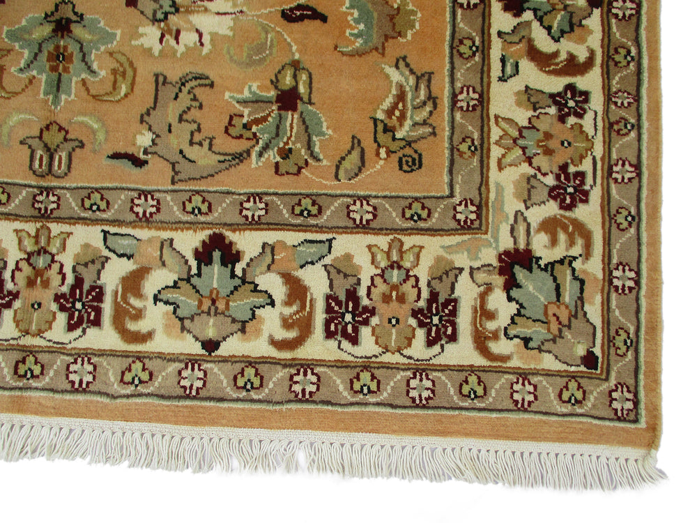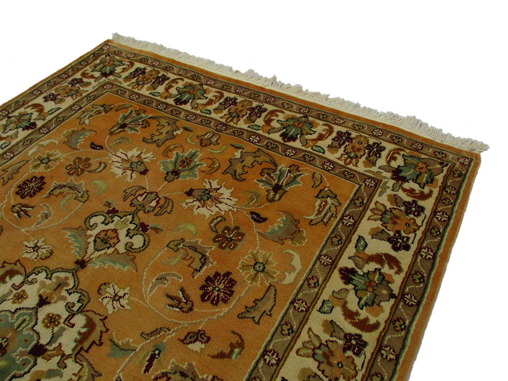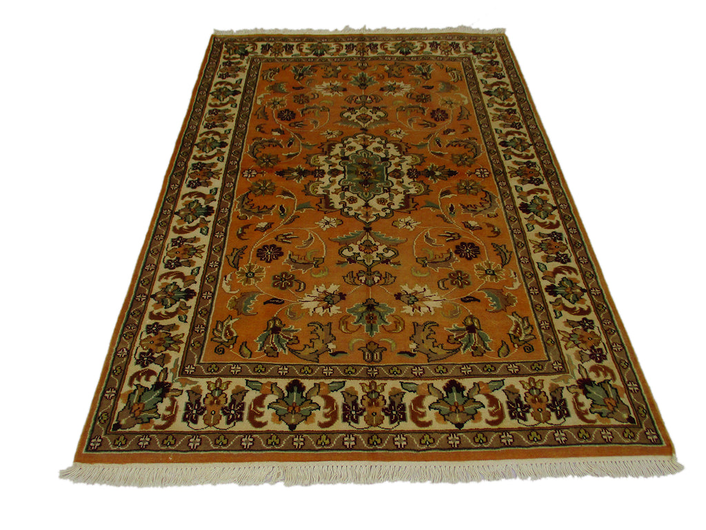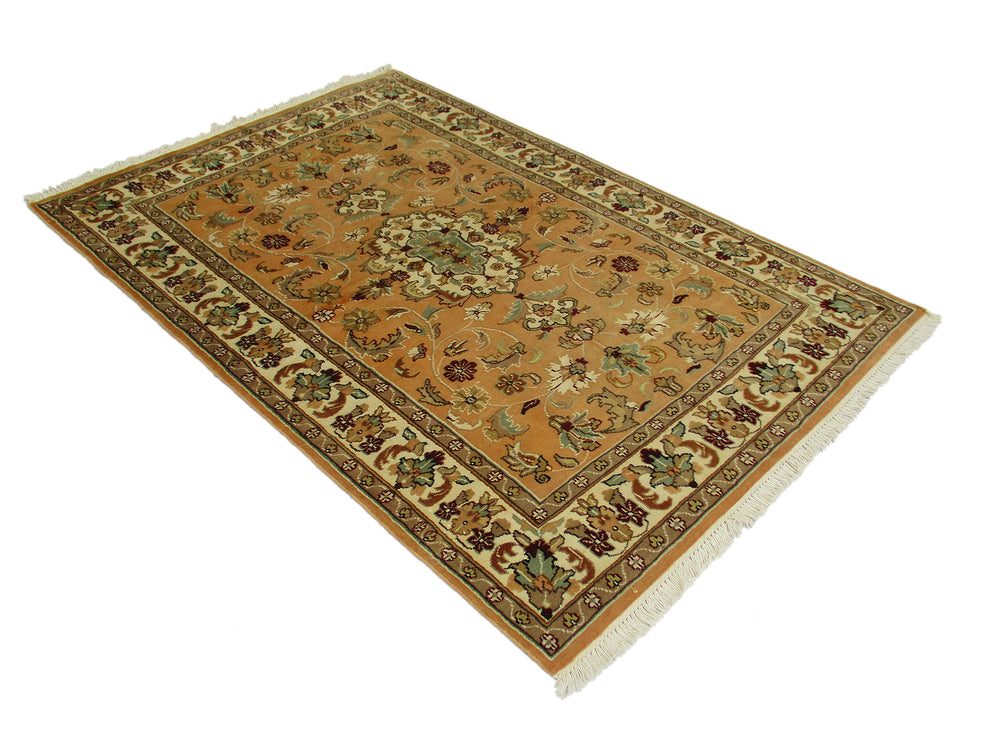 This elegant Karachi rug is a big nod if you are someone who loves and longs for simplicity and durability! Brillaintly woven in silk and wool portraying a beautiful Persian style will continue to rule your hearts! It is designed to offer a great quality and wear-resistance that makes it sure to last a lifetime with normal use. Its touch of softness and comfort fills your room with an aura of bliss everywhere. This rug also exhibits a floral appeal which matches with your decor and furniture effortlessly, giving you best value for money. Crafted in exciting tones of brown, beige and red, the 4'1"x6'1" size rug, this has sevreal miniscule detailing and a neatly contrived border as its highlights.