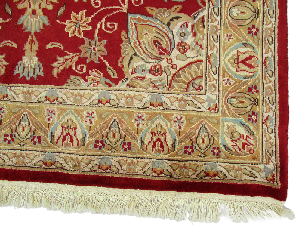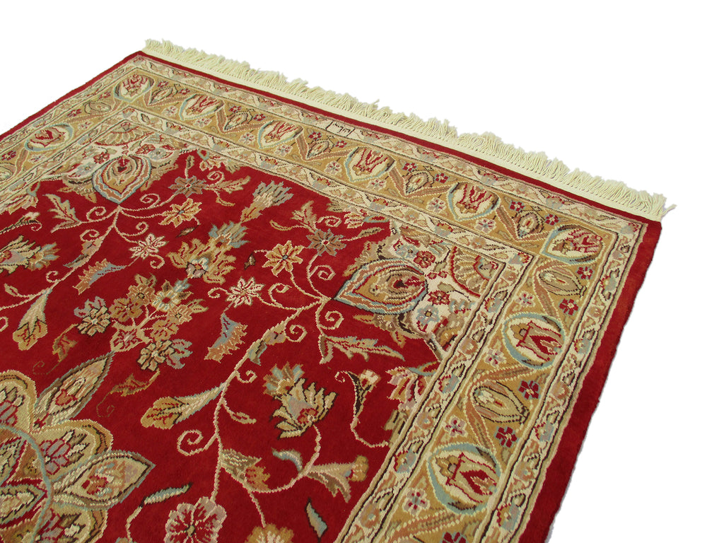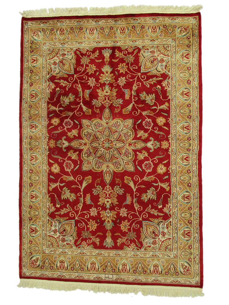 With a perfect dimensions of 4' 3" x 6' 0", with touches of blue, beige and green, this Karachi rug betters your home in no time! Its classical pattern makes it the best area rug, proving to be your functional companion to greet your friends and family in a much warmer way. Filled with floral patterns all throughout, this rug gets highlighted with scrolls and curves that is peculair to this kind of Pakistani rugs! It gives you a casual and comfortable feel, accenting your living room, dining room, foyer or your back door. Its neatly framed border is its highlight. Easy to maintain, this rug makes a great addition to a simple home that longs for perfection.