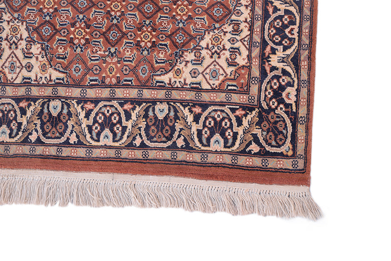 Singing the glory of its place of origin, this Kashmir Rug has an oriental tone in it which lets your insides brim with loveliness! Made of premium quality silk for ultimate luxury, it has a very powerful Persian influence in its pattern. A range of bright colored wool spun by the brilliant craftsmen in India, this particular rug will turn to become a great addition to your room. What makes it stand out from the row is its most influenced antique Persian warm tones and intricate designs that build up the look and feel of your room. This is highly durable displaying a clever hand-knotted construction, which you will treasure for many years to come.