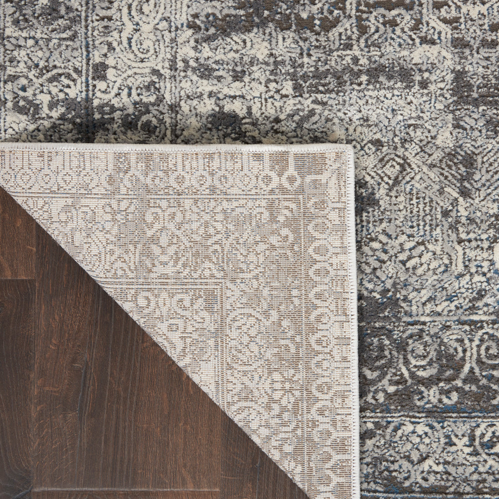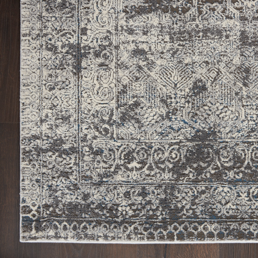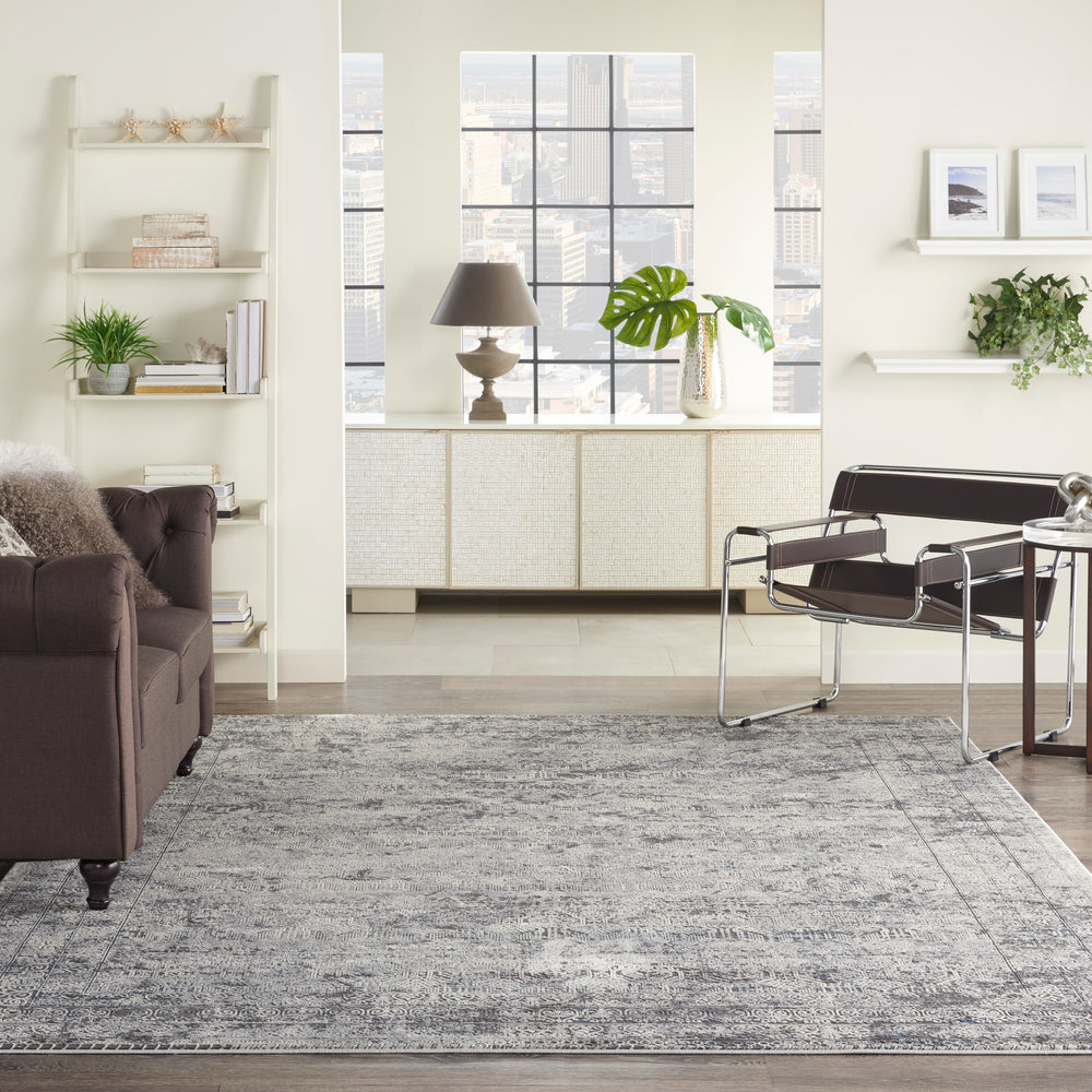 The intrigue of antiquity glimmers in the delicately faded details of this kathy ireland® Home Grand Expressions rug. It’s a sophisticated and urban finishing touch for the contemporary home, in a beautifully balanced palette of soft grey and ivory.