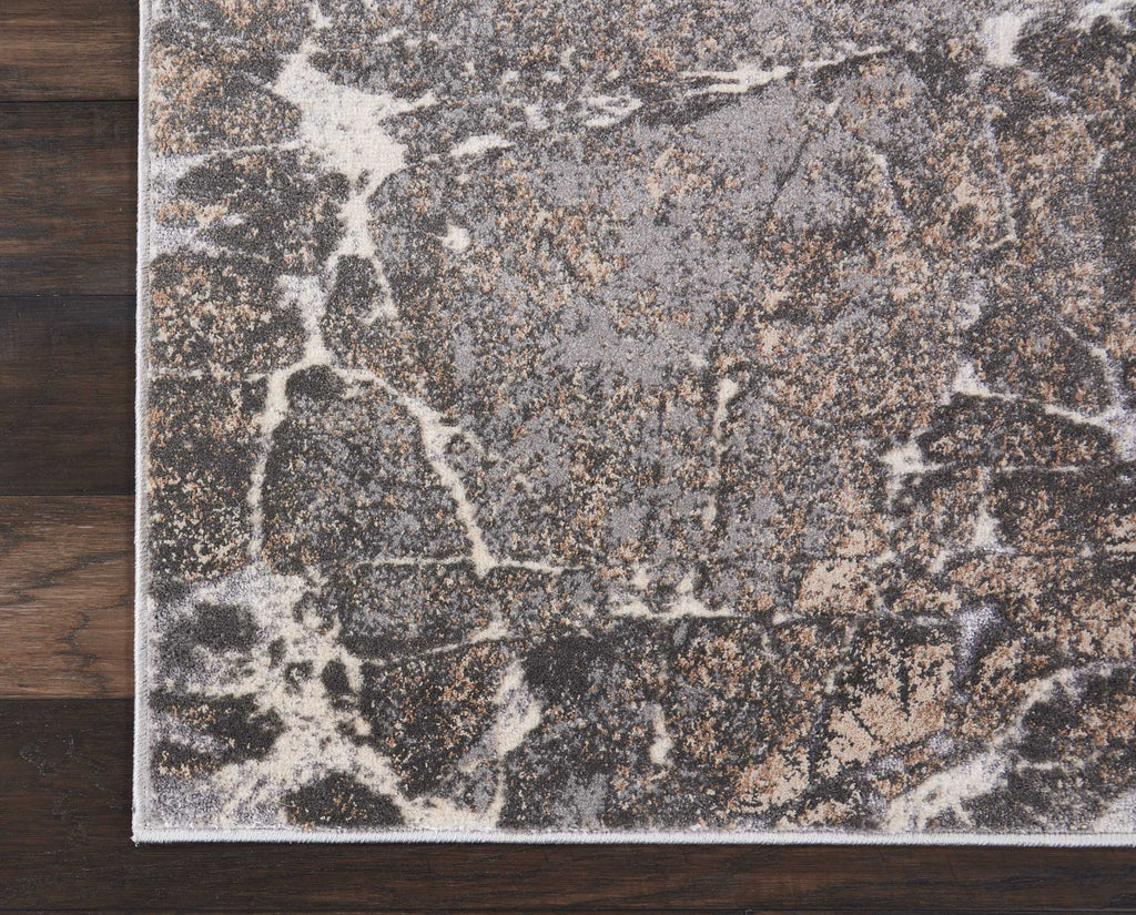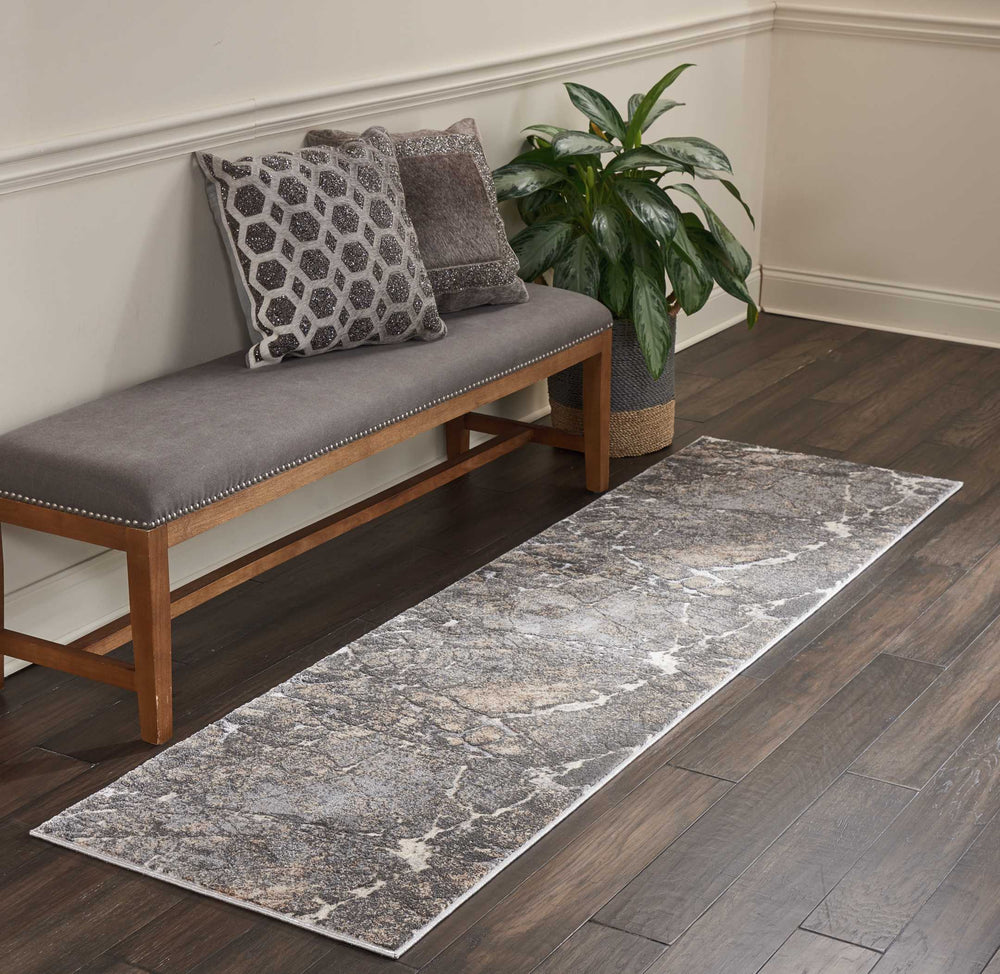 A stunning interplay of tones, shading, and texture make this kathy ireland® Home Heritage Collection rug runner truly unique. Earth and stone hues invoke images of urban life and the marks of time from which it draws its character and spirit. A contemporary statement piece sure to complement any room in your home.